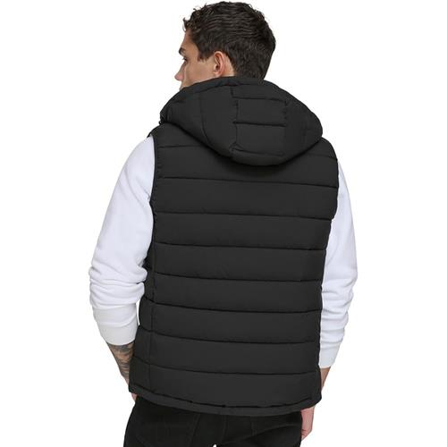 【Calvin Klein】2024男時尚輕質可折黑色連帽背心外套
