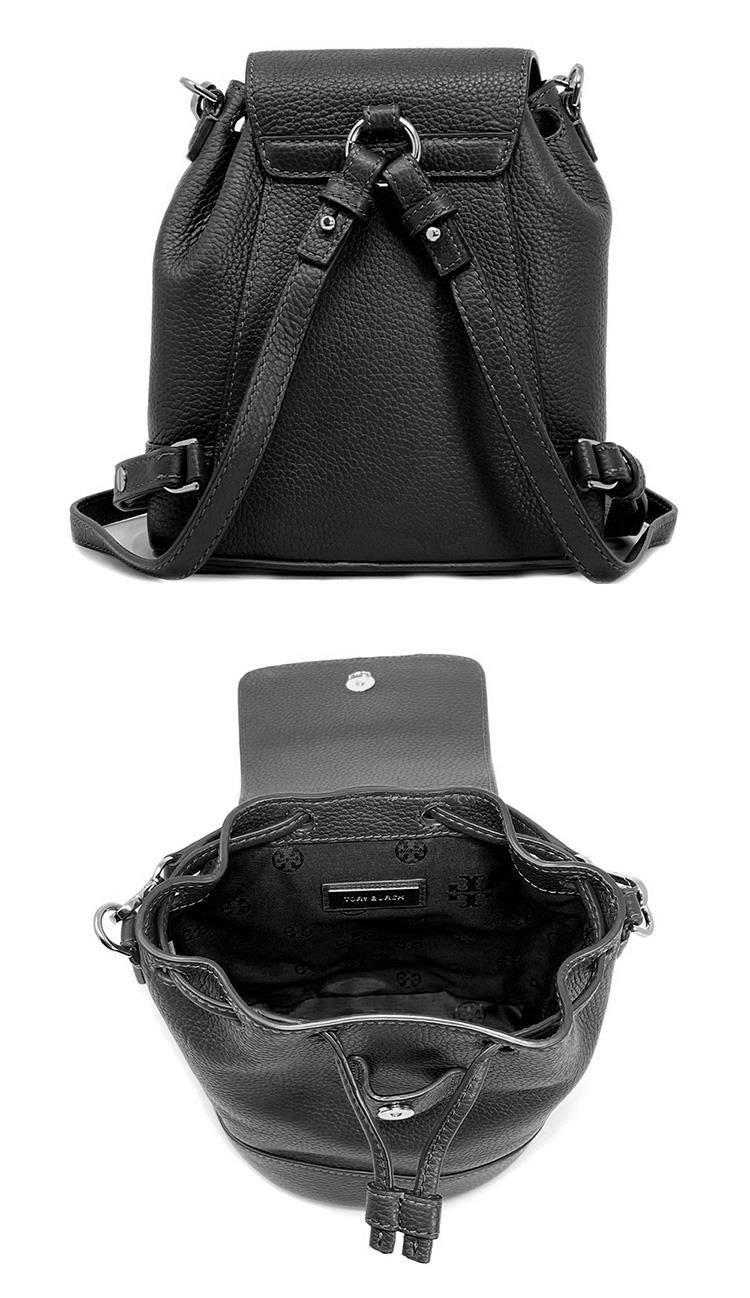 TORY BURCH 素面皮革翻蓋後背包-黑