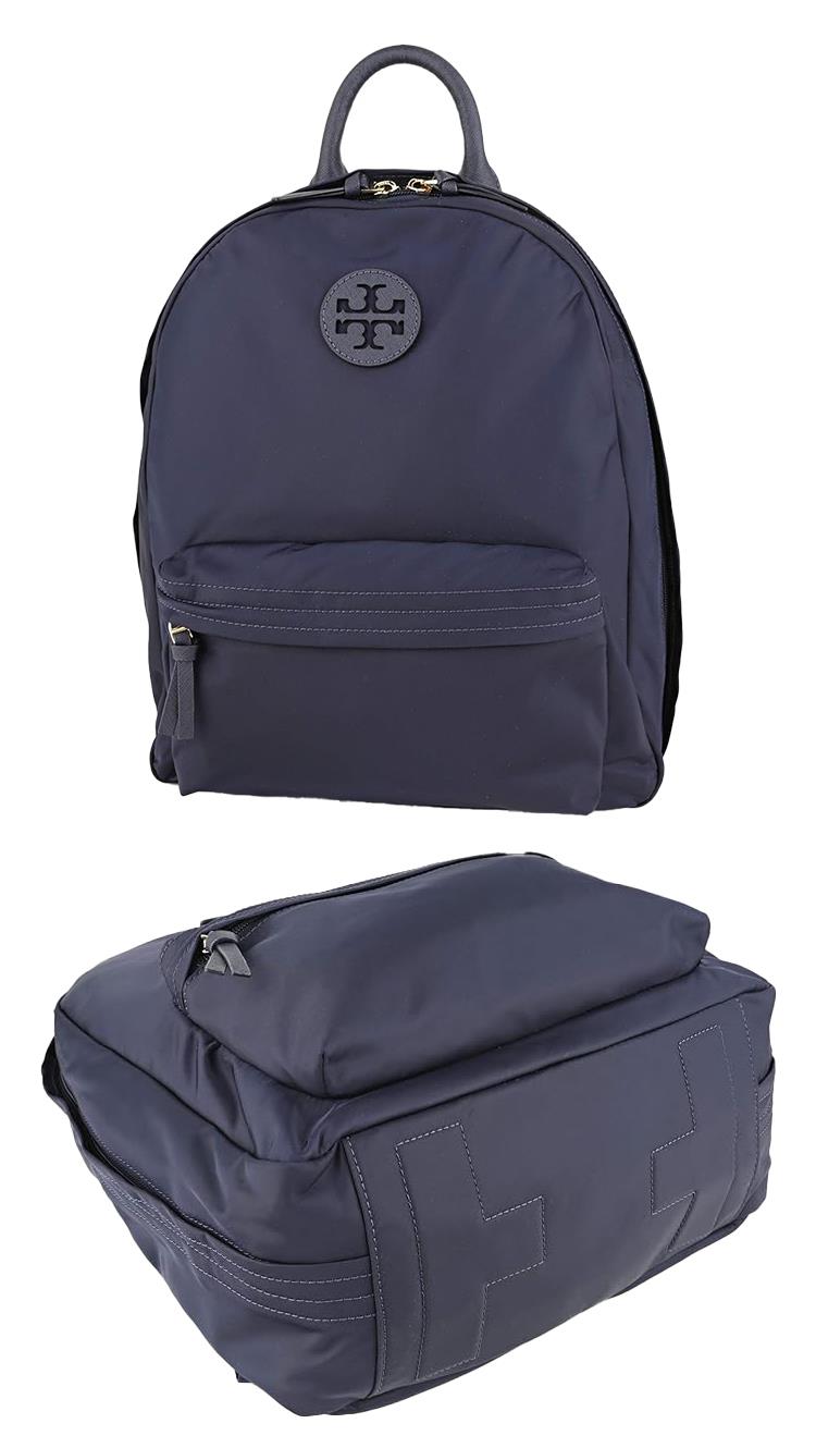 TORY BURCH 經典LOGO素面尼龍後背包-深藍