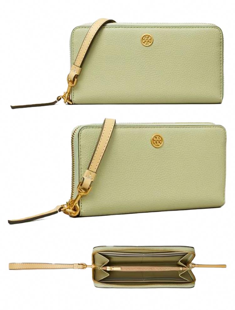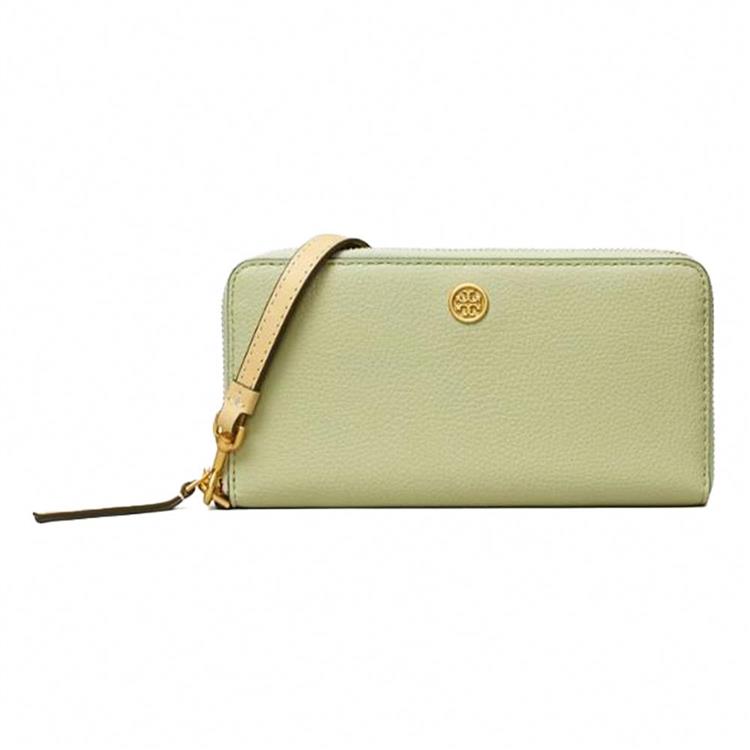 Tory Burch 素面皮革拉鍊長夾-淺綠