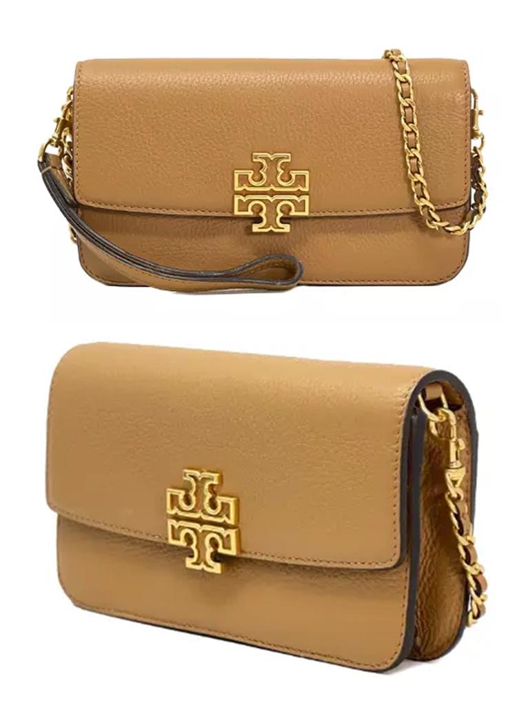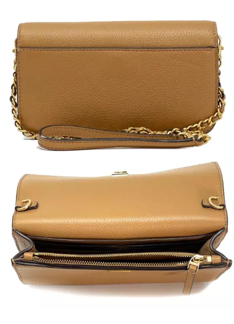 Tory burch 雙T-LOGO皮革鏈條斜背包-駝