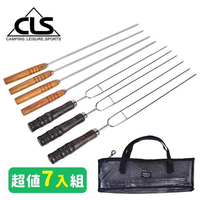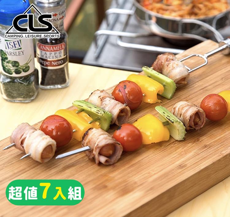 【韓國CLS】不鏽鋼烤肉叉超值七入組 黑色限定款/烤肉/野餐/野炊/露營/登山