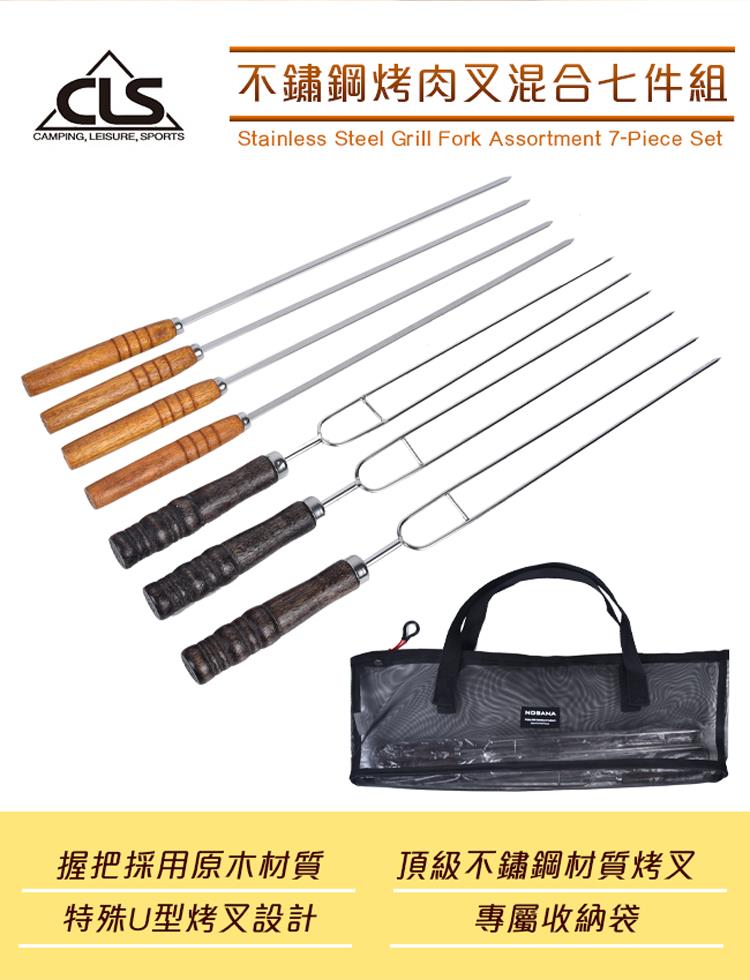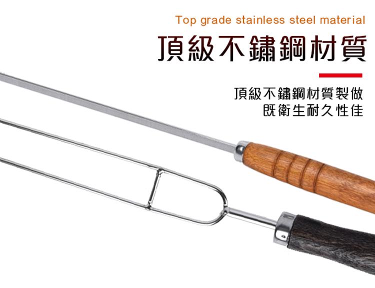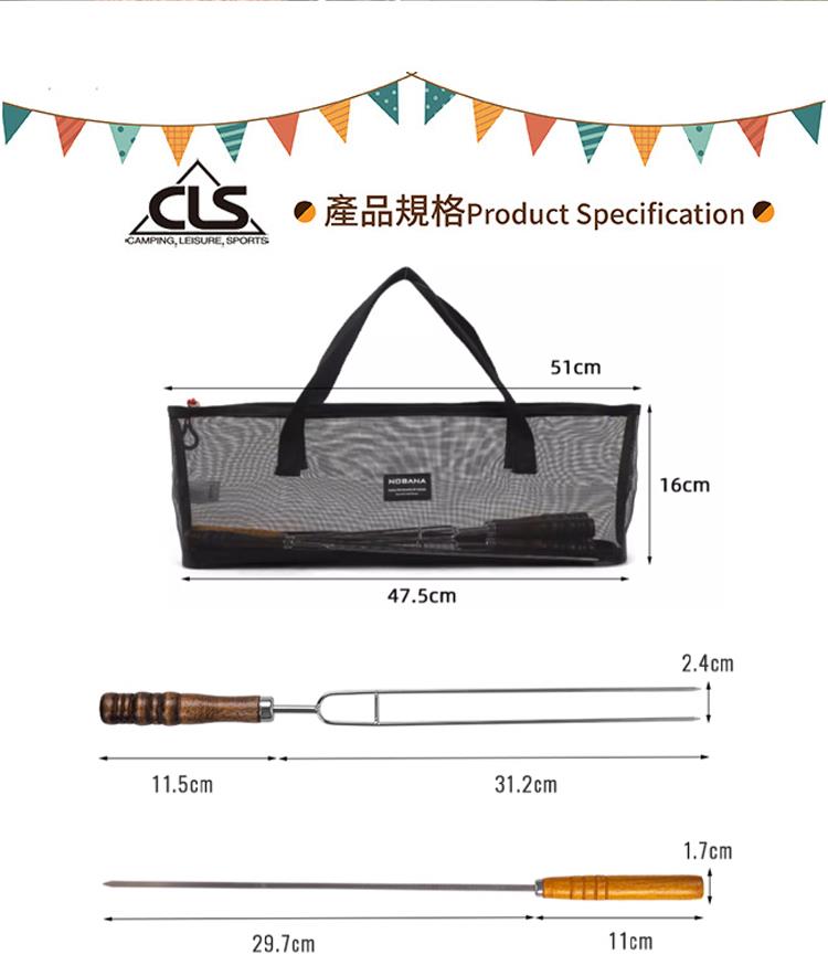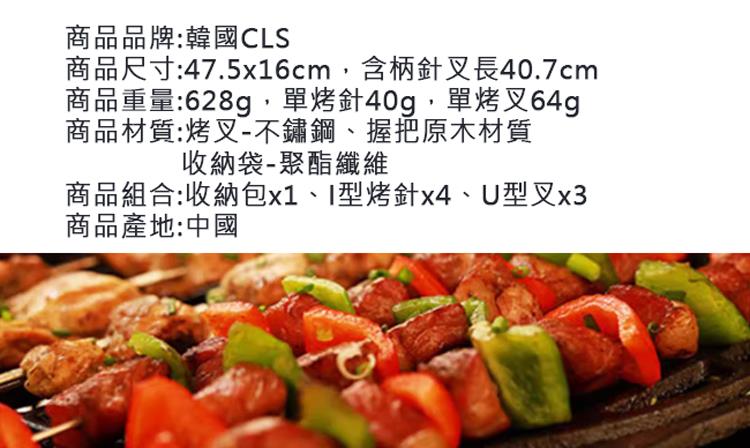 商品材質:烤叉-不鏽鋼,握把原木材質,收納袋-聚酯纖維
