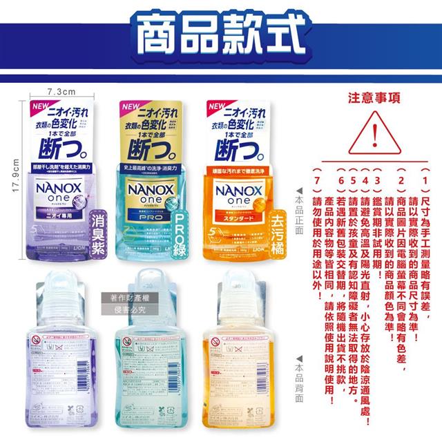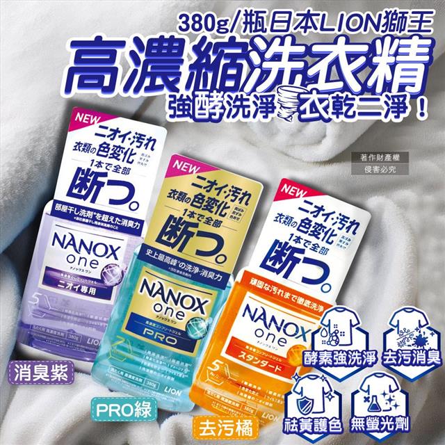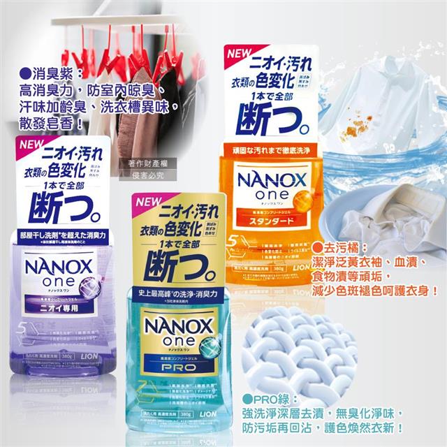 (清潔-衣物)日本LION獅王-奈米樂NANOX-one高濃縮洗衣精380g瓶裝(3款)介紹圖