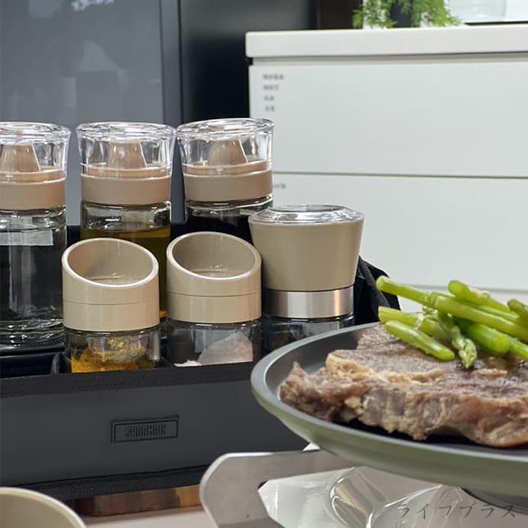 分格內盒瓶身放置有序,前後排高低差方便取拿 玻璃材質罐身易辨識內容物,適合裝盛各式調味品