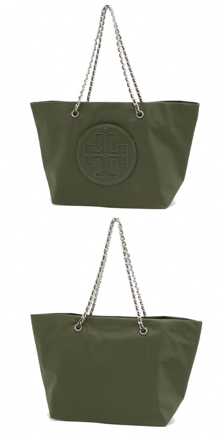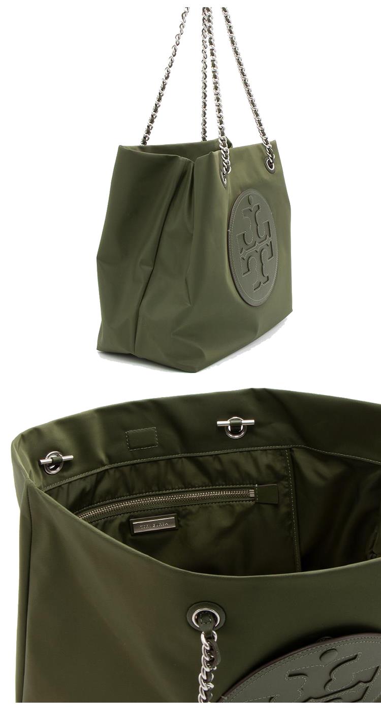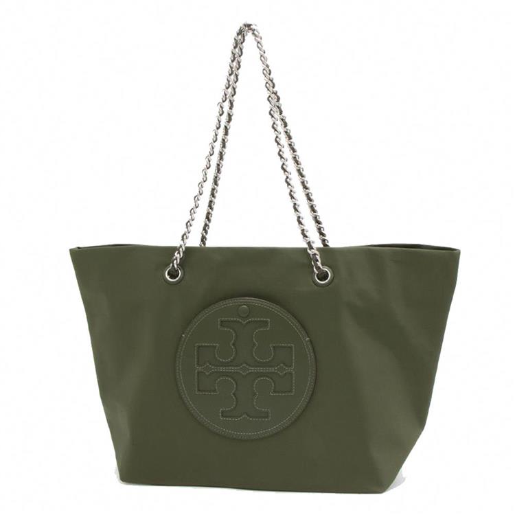 TORY BURCH 雙TLOGO皮革鏈帶肩背包-軍綠