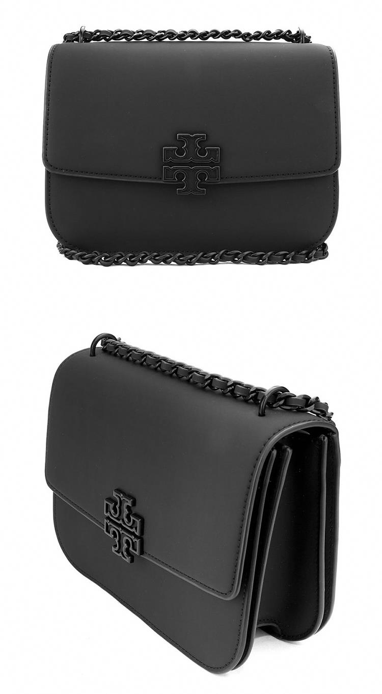 TORY BURCH 雙TLOGO皮革翻蓋斜背鍊包-磨砂黑