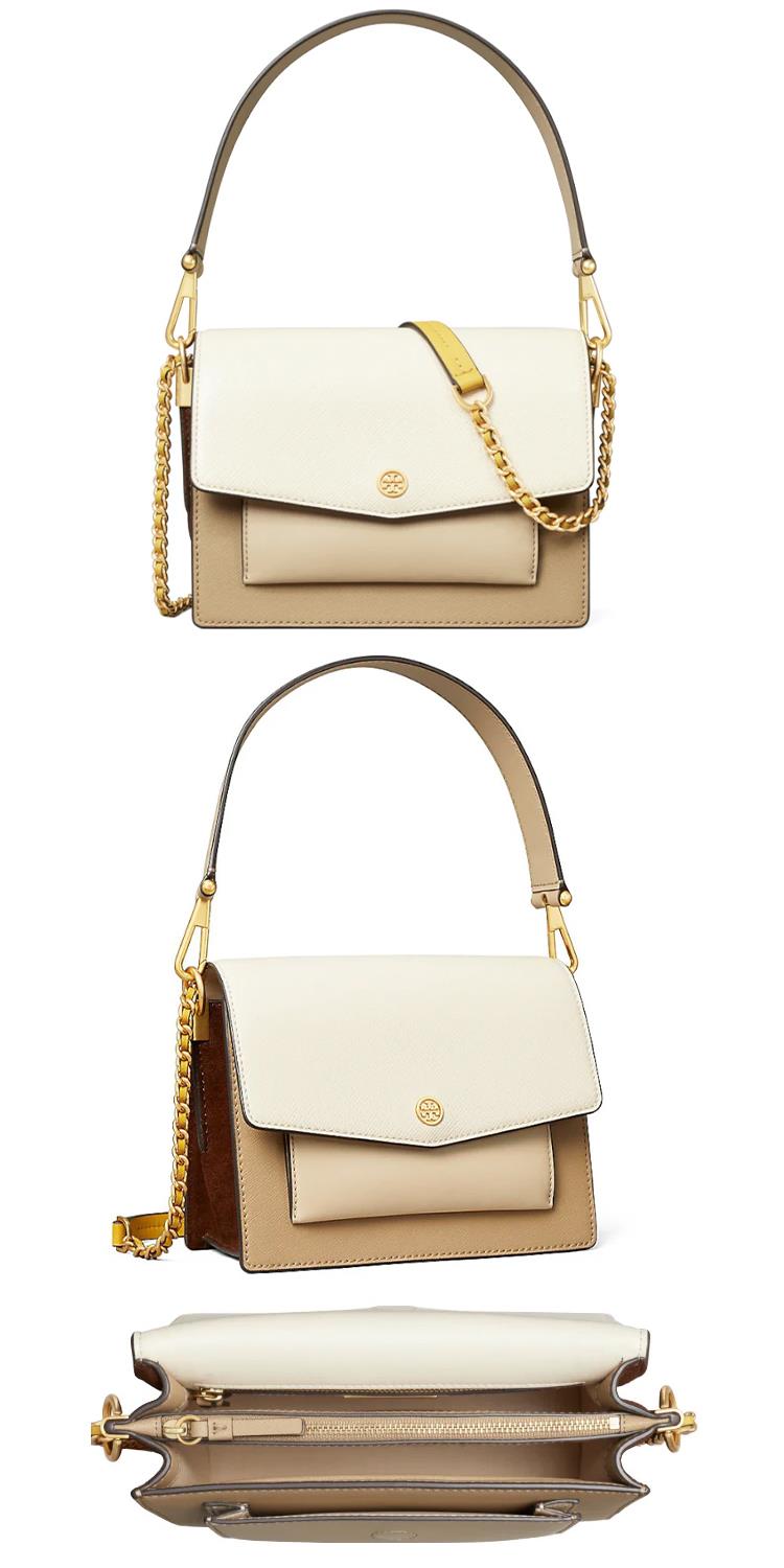 TORY BURCH 拼接皮革翻蓋斜背鍊包