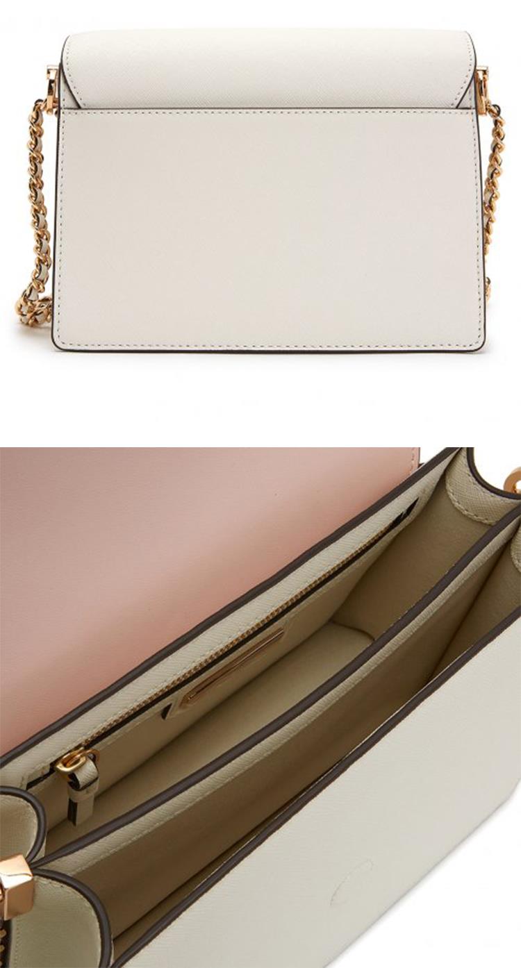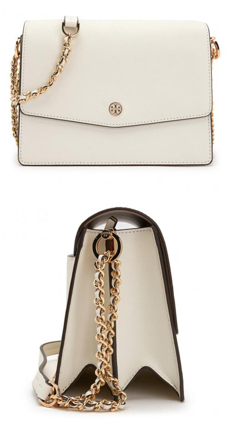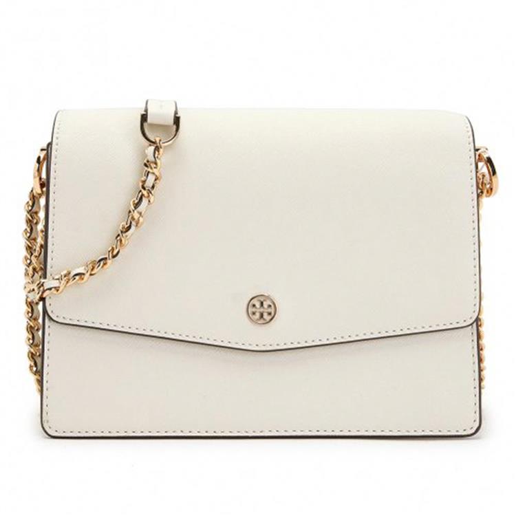 TORY BURCH 防刮皮革翻蓋斜背鍊包-米白