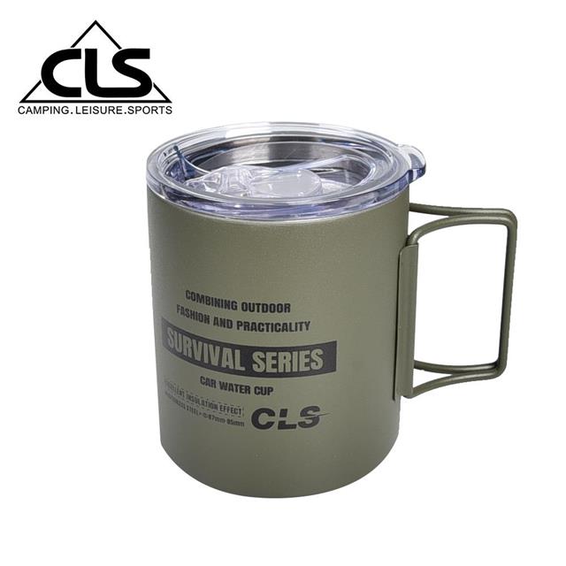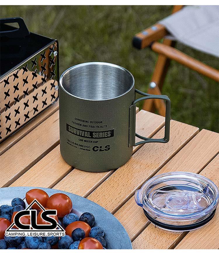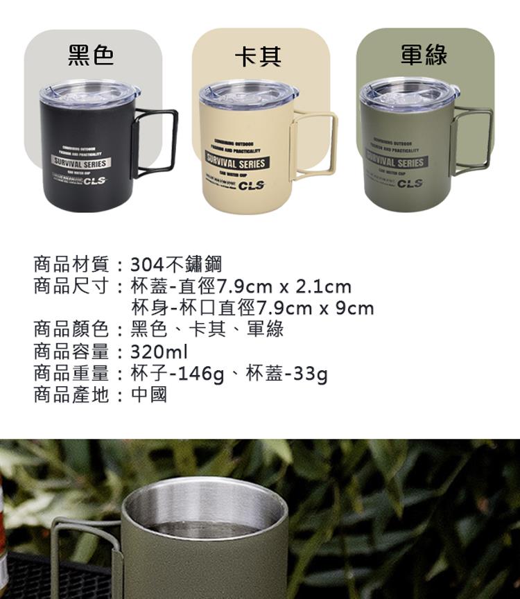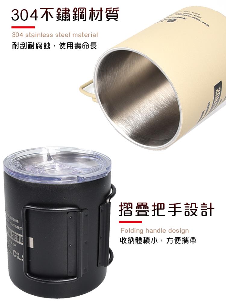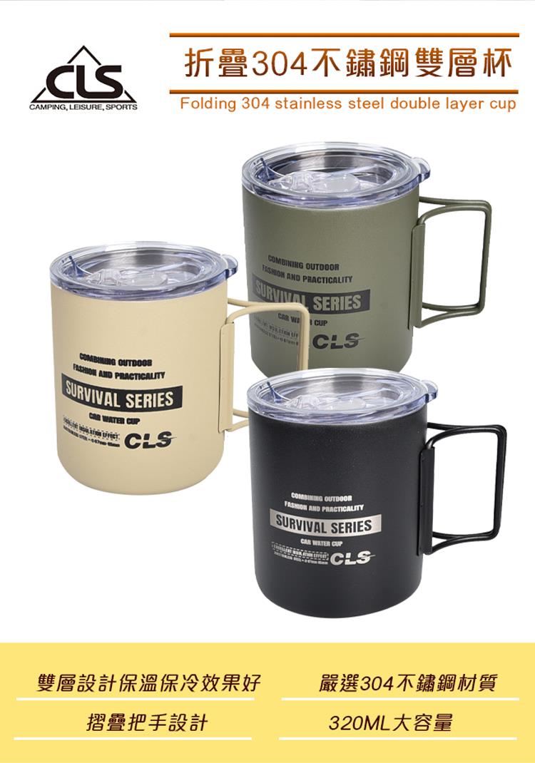 【韓國CLS】摺疊304不鏽鋼雙層杯 贈杯蓋 320ML/登山杯/露營杯/軍風/露營/野餐(三色任選)