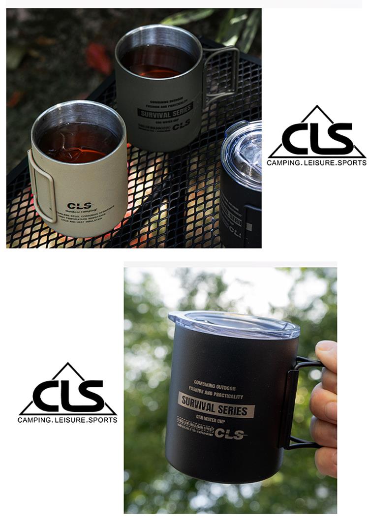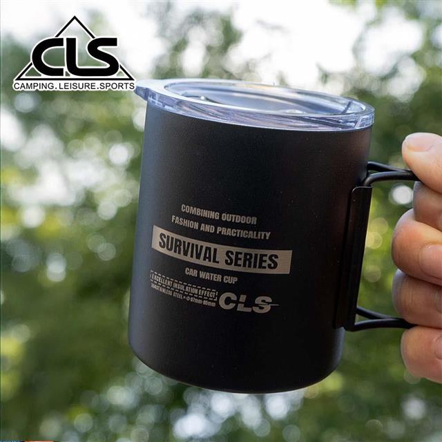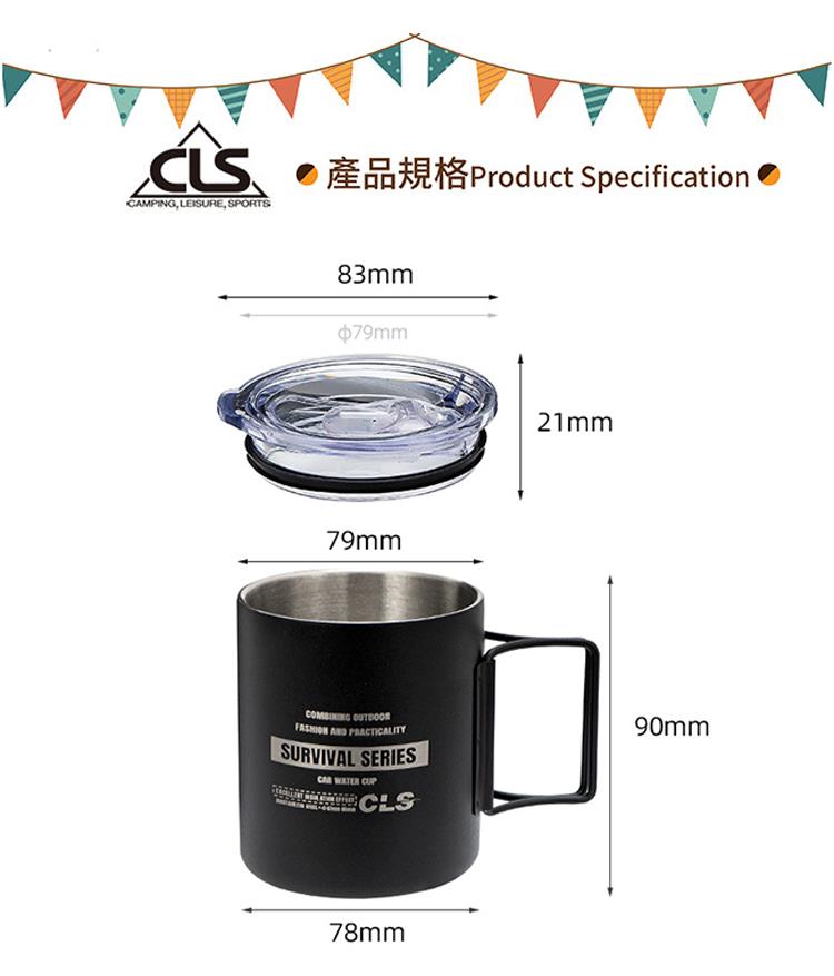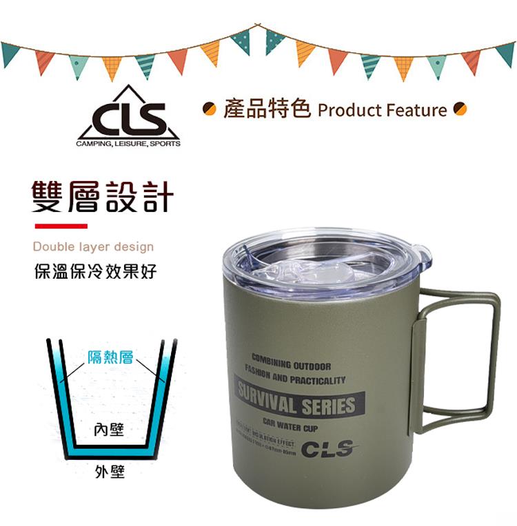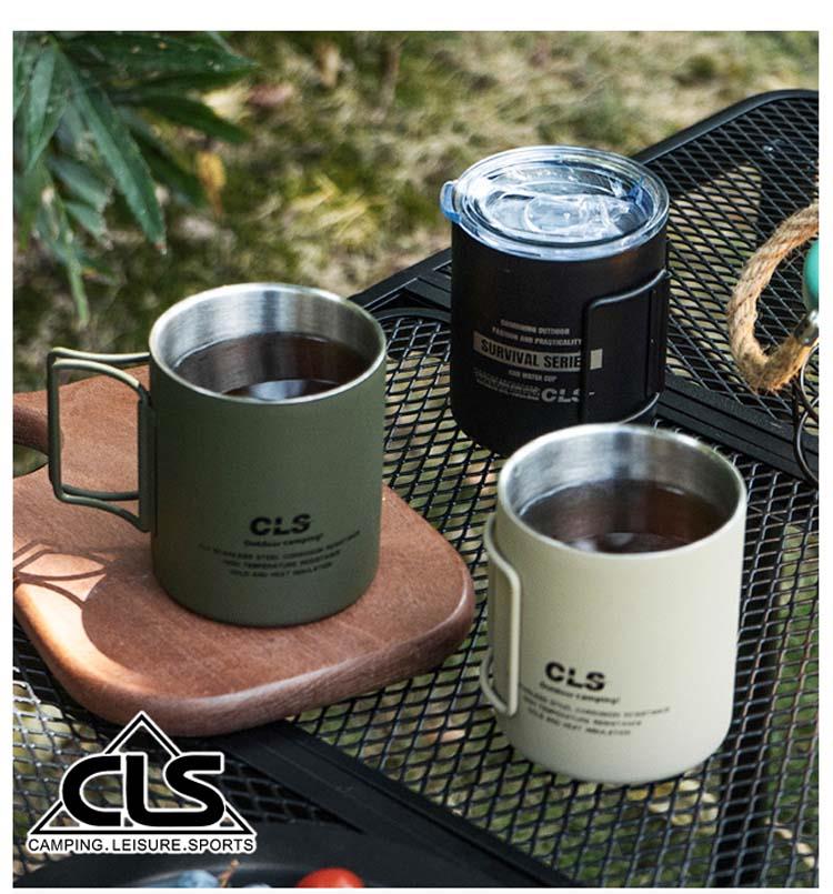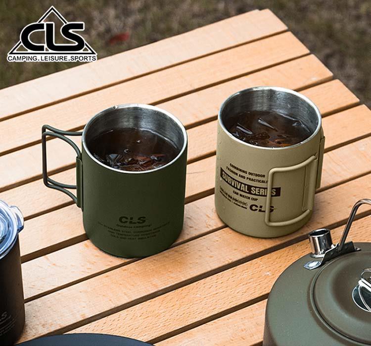 【韓國CLS】摺疊304不鏽鋼雙層杯 贈杯蓋 320ML/登山杯/露營杯/軍風/露營/野餐(三色任選)