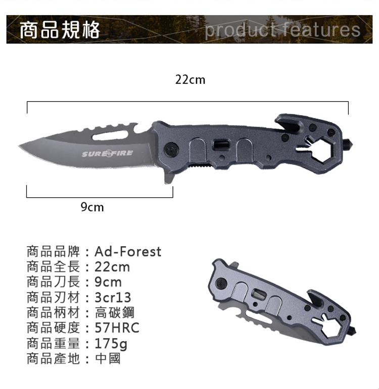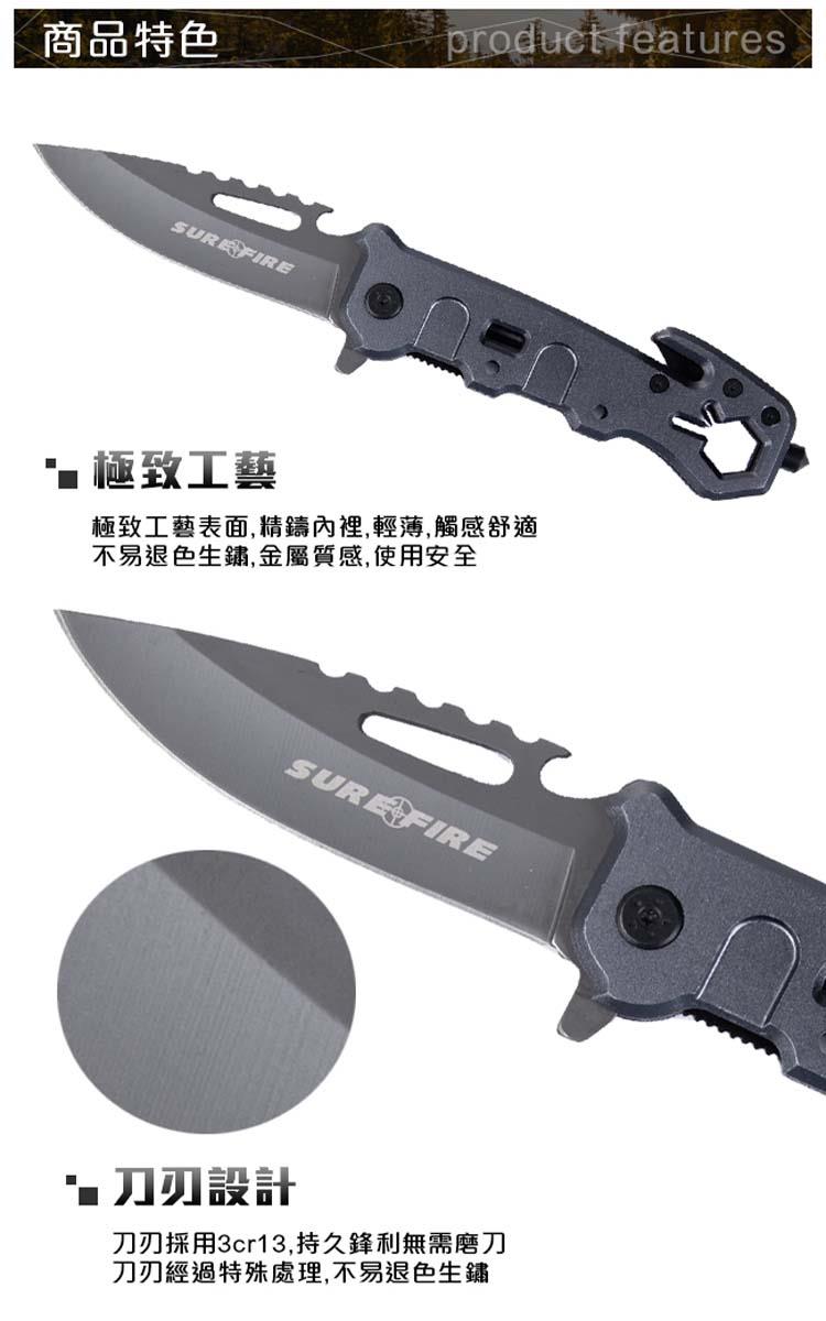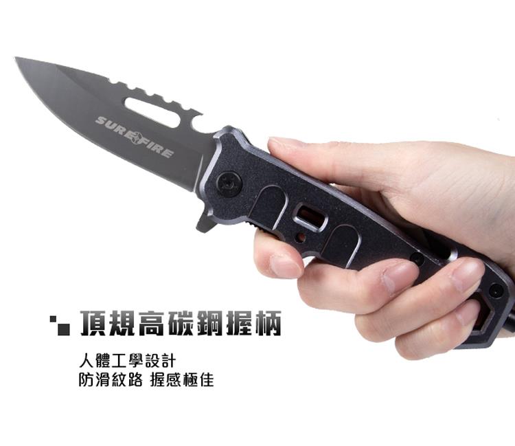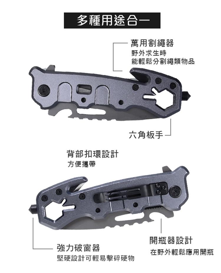 軍規高碳鋼握把,刀口不缺不生鏽,多種用途合一