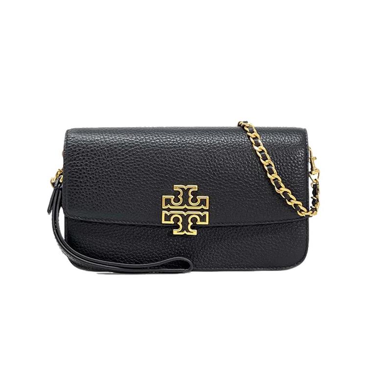 Tory burch 雙T-LOGO皮革鏈條斜背包-黑