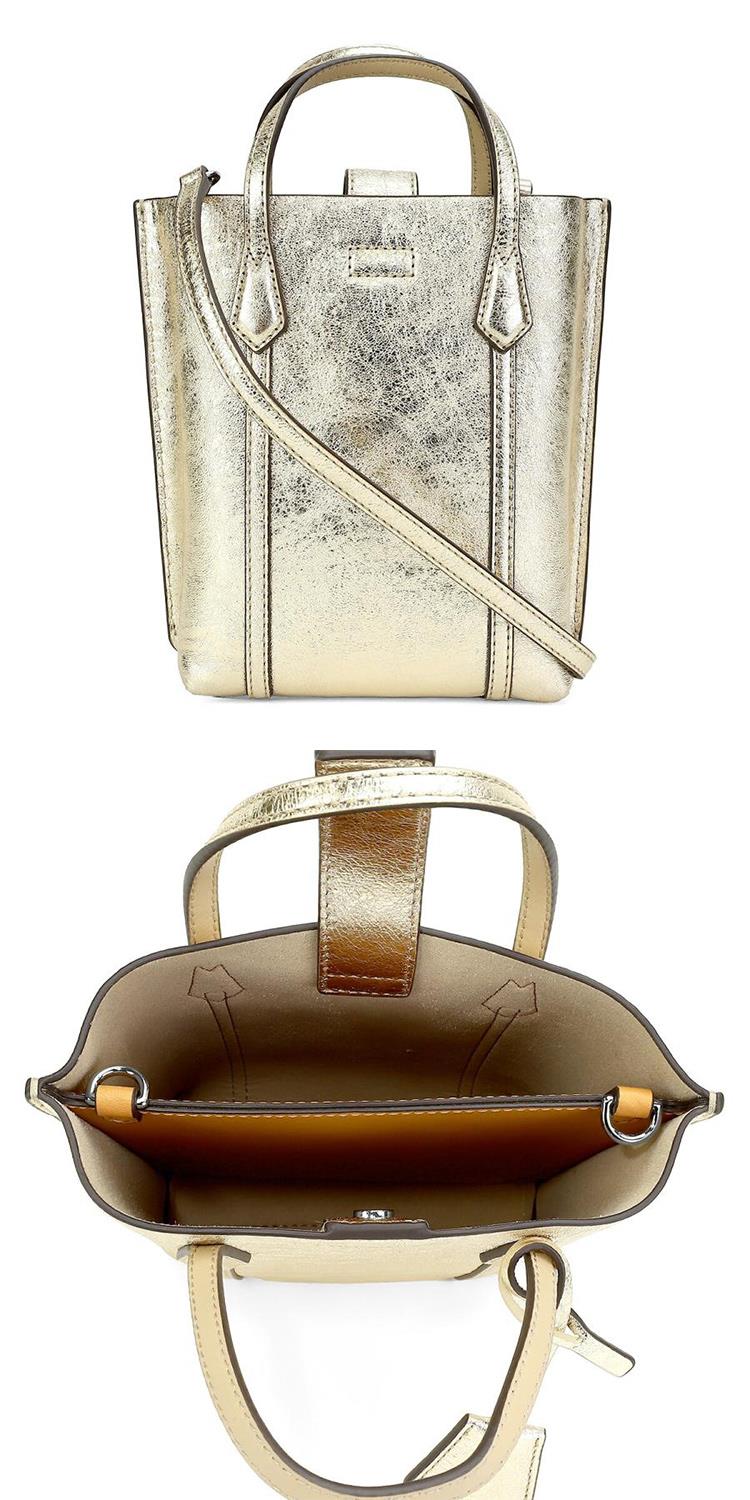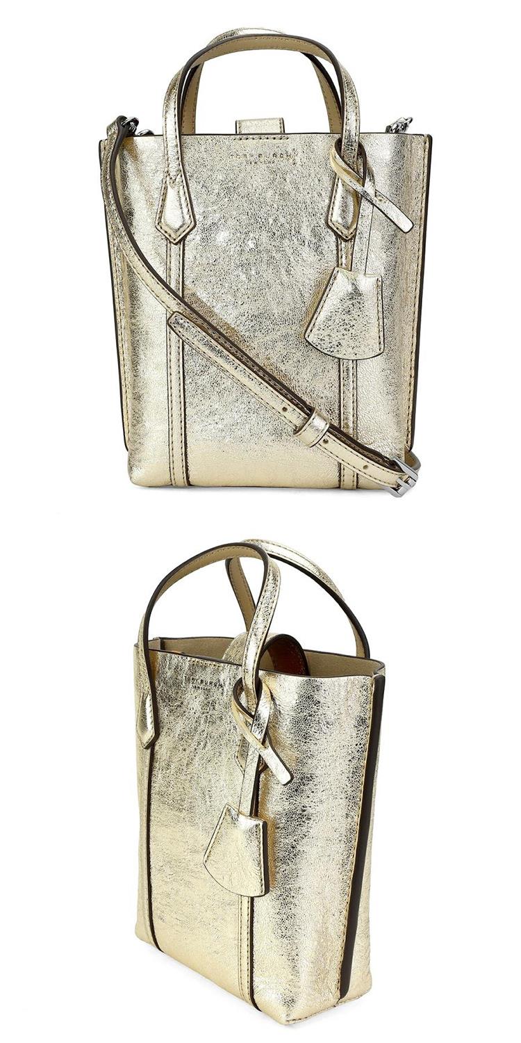 Tory Burch 金屬皮革肩背斜背兩用包-金