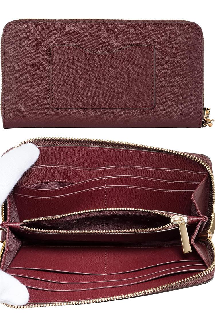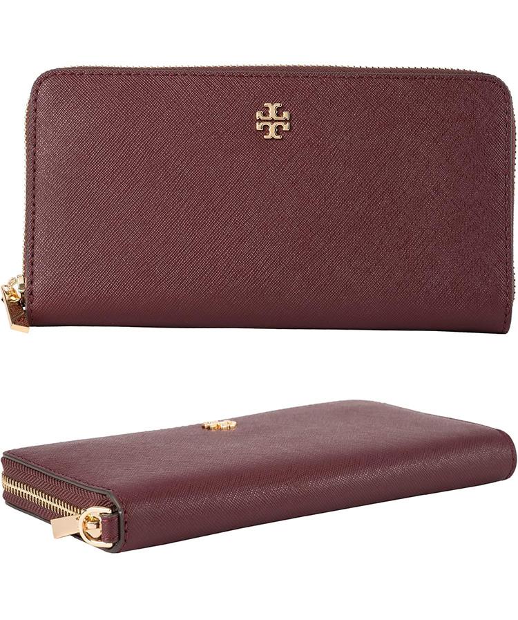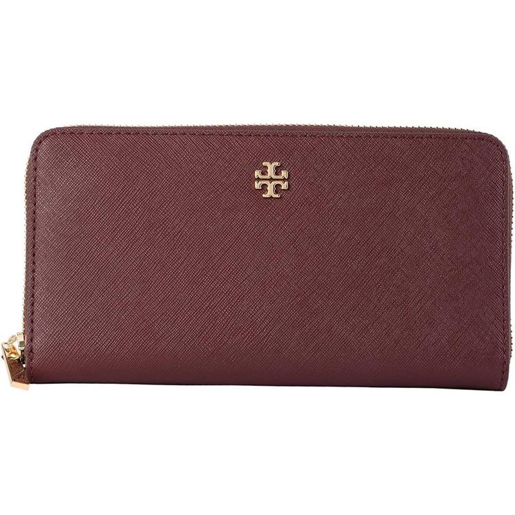 Tory Burch 雙T-LOGO素面皮革長夾-酒紅