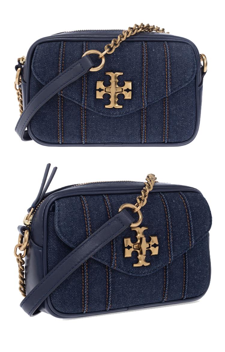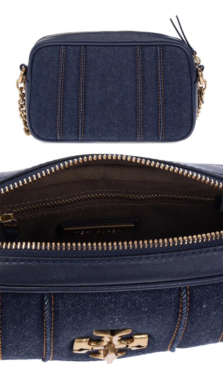 TORY BURCH 雙TLOGO斜背相機包-牛仔