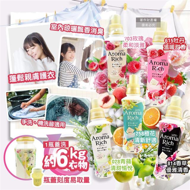 (清潔-衣物)日本LION獅王-Aroma-Rich衣物香氛柔軟精480ml瓶裝(5款)介紹圖