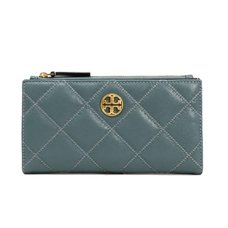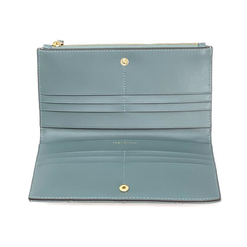 Tory burch 釦式對開長夾-深湖水綠