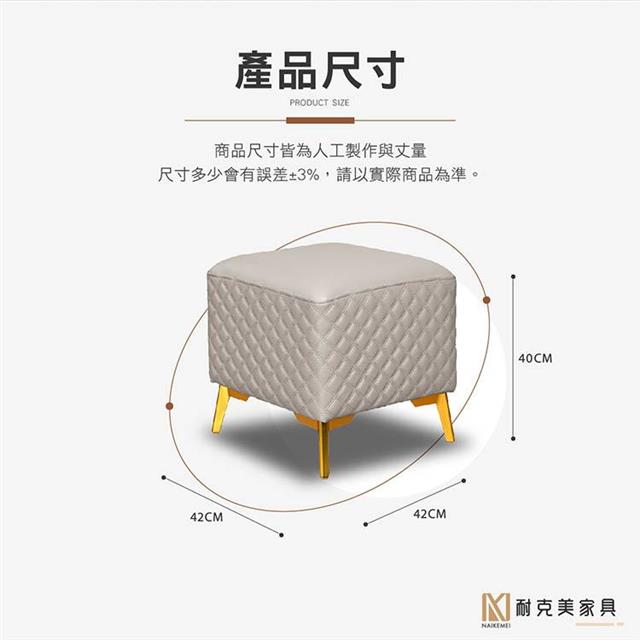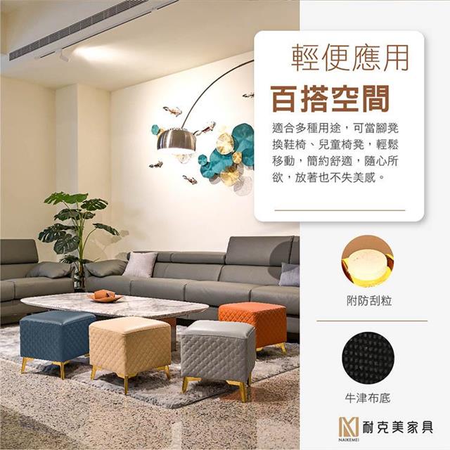 【耐克美家具】義式菱格紋方形椅凳 淺灰色 /客廳 腳凳 兒童 換鞋椅 沙發 茶几 矮凳 單椅 板凳 換鞋凳 床尾椅 凳子