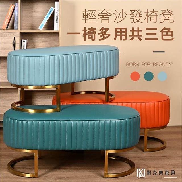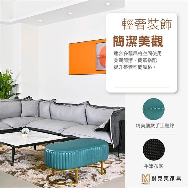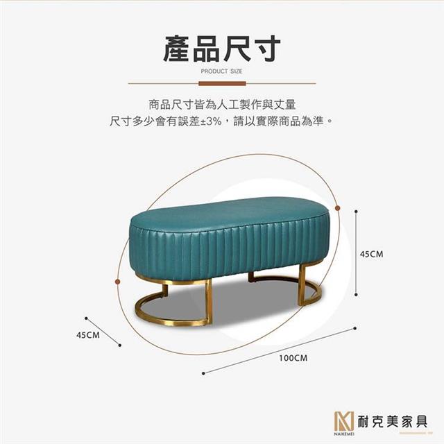 【耐克美家具】橢圓皮面沙發長椅凳 綠色 /客廳 腳凳 兒童 換鞋椅 沙發 茶几 矮凳 單椅 板凳 換鞋凳 長凳 床尾椅