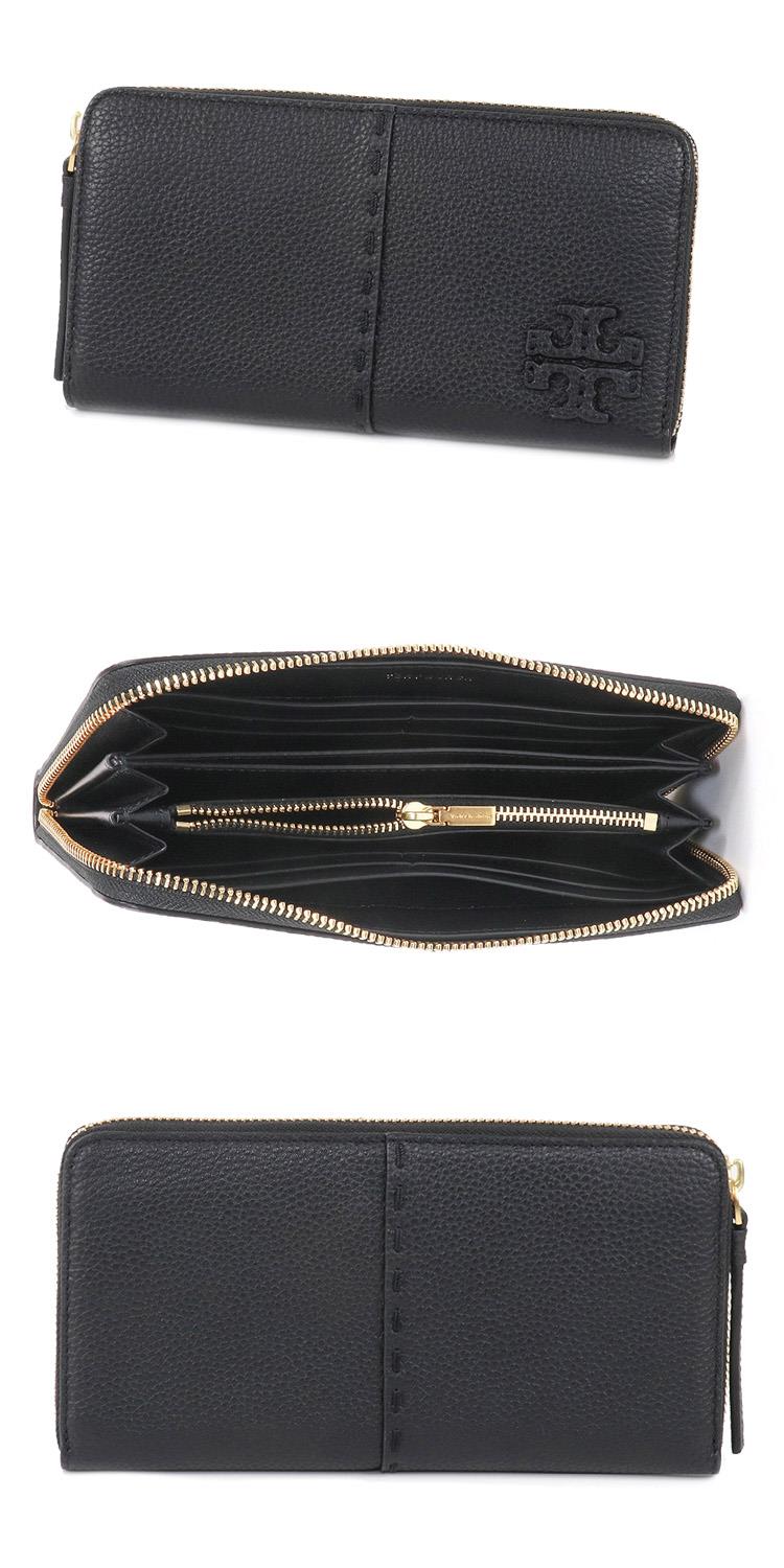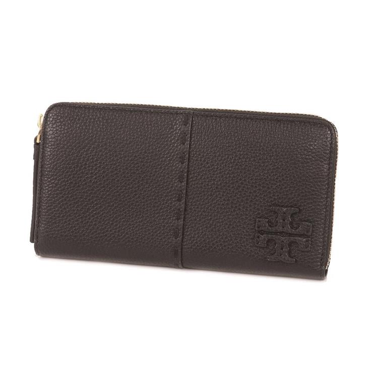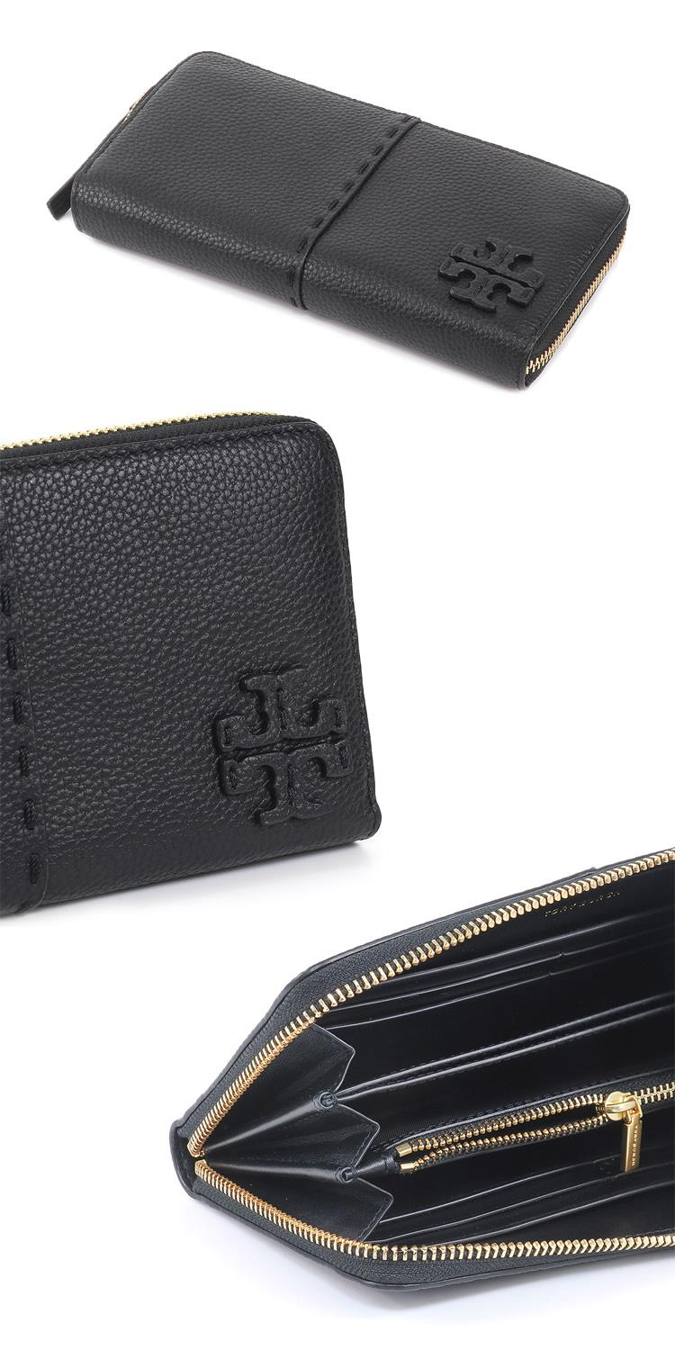 TORY BURCH 縫線ㄇ型拉鍊長夾-黑