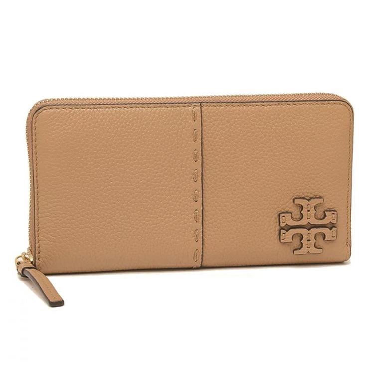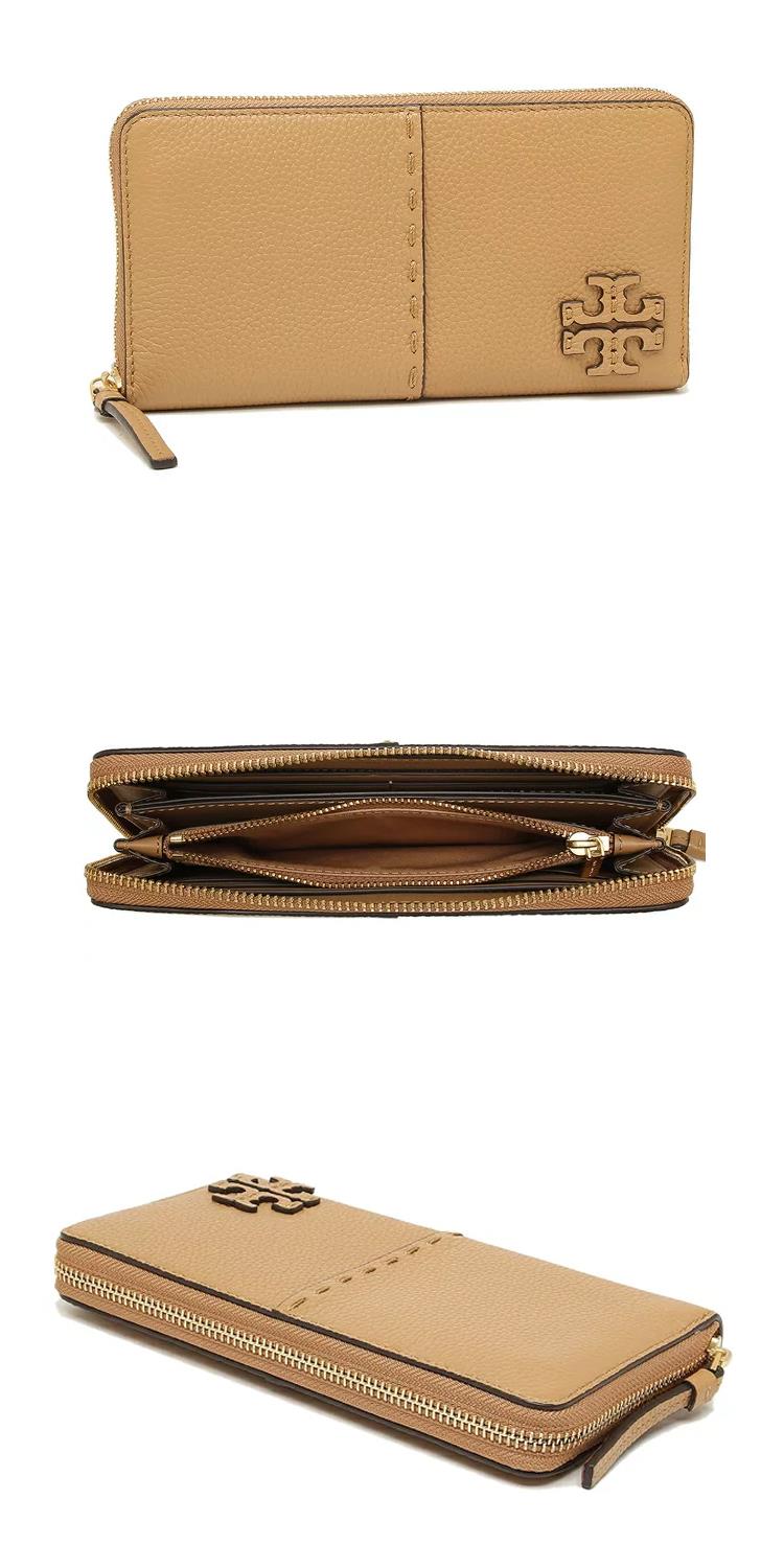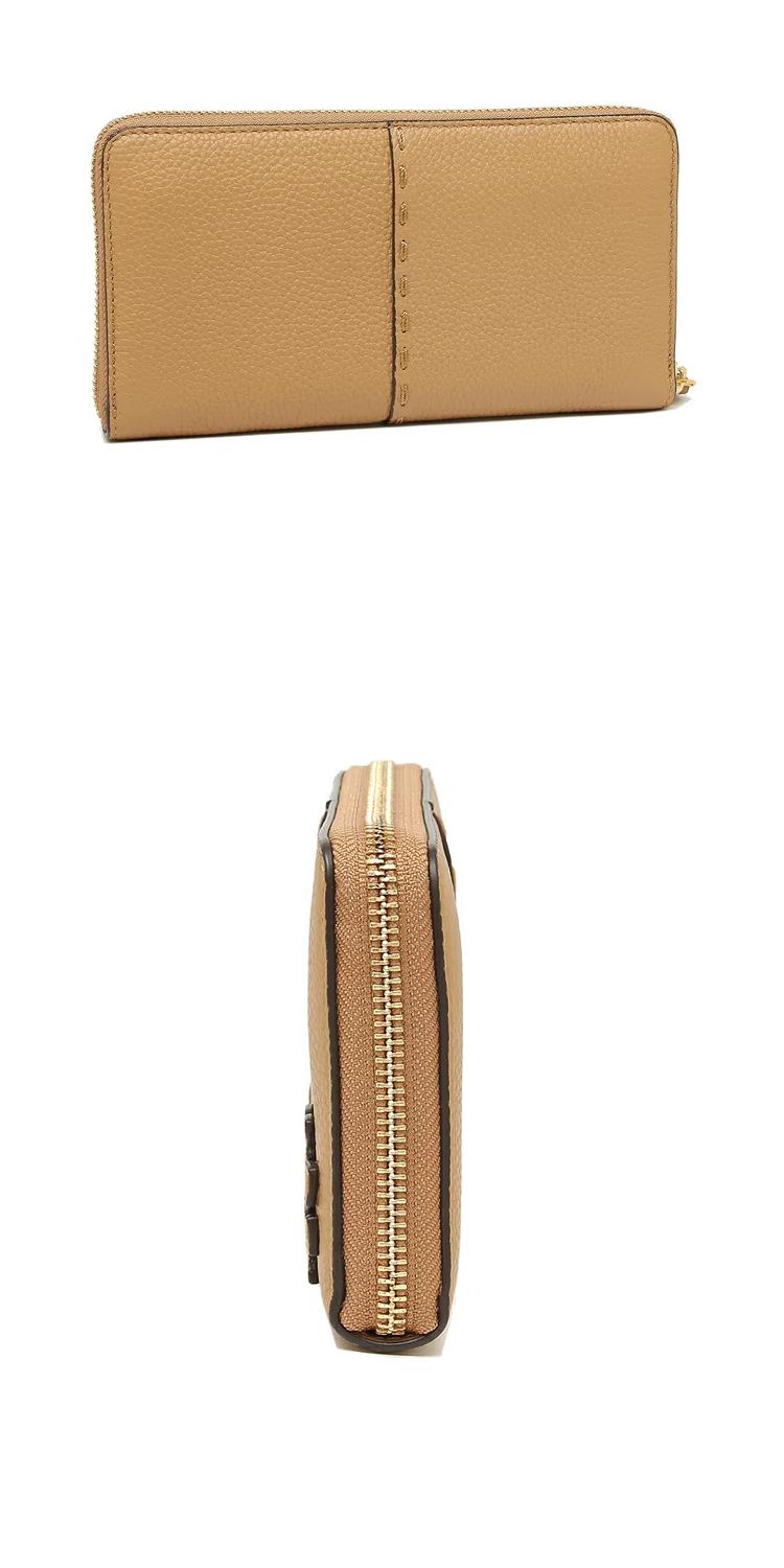 TORY BURCH 縫線ㄇ型拉鍊長夾-駝