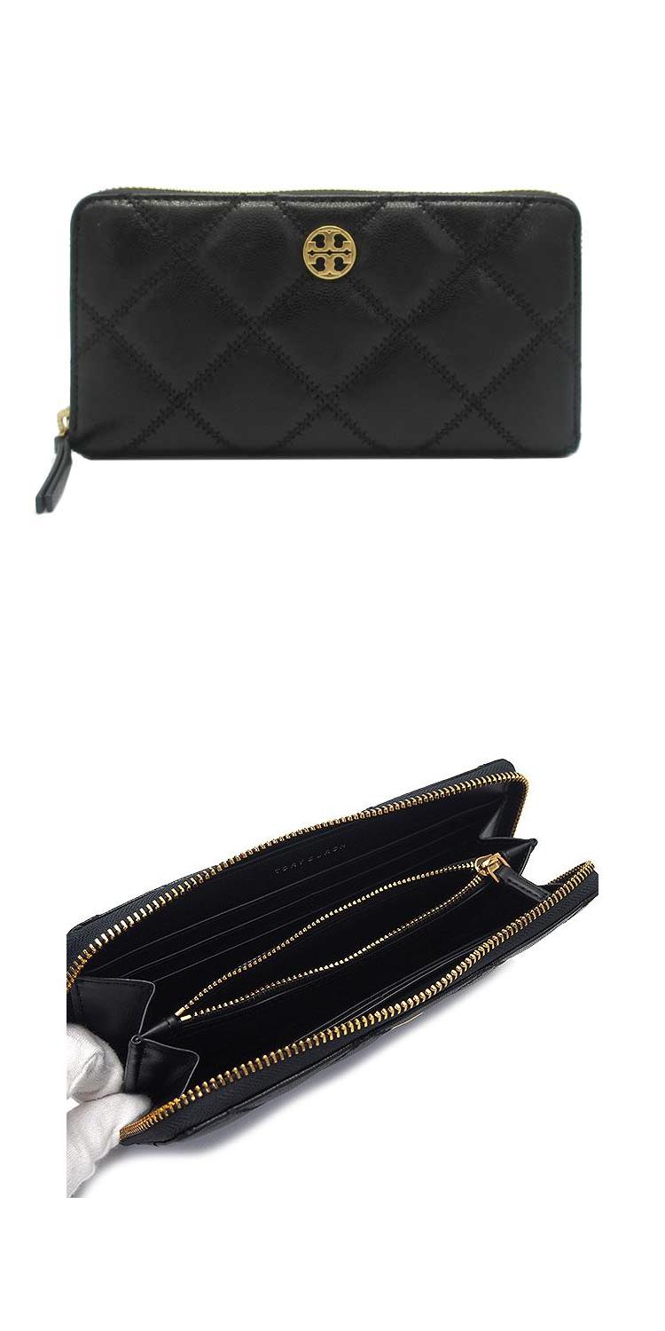 TORY BURCH 羊皮皮革菱格紋質感拉鍊長夾