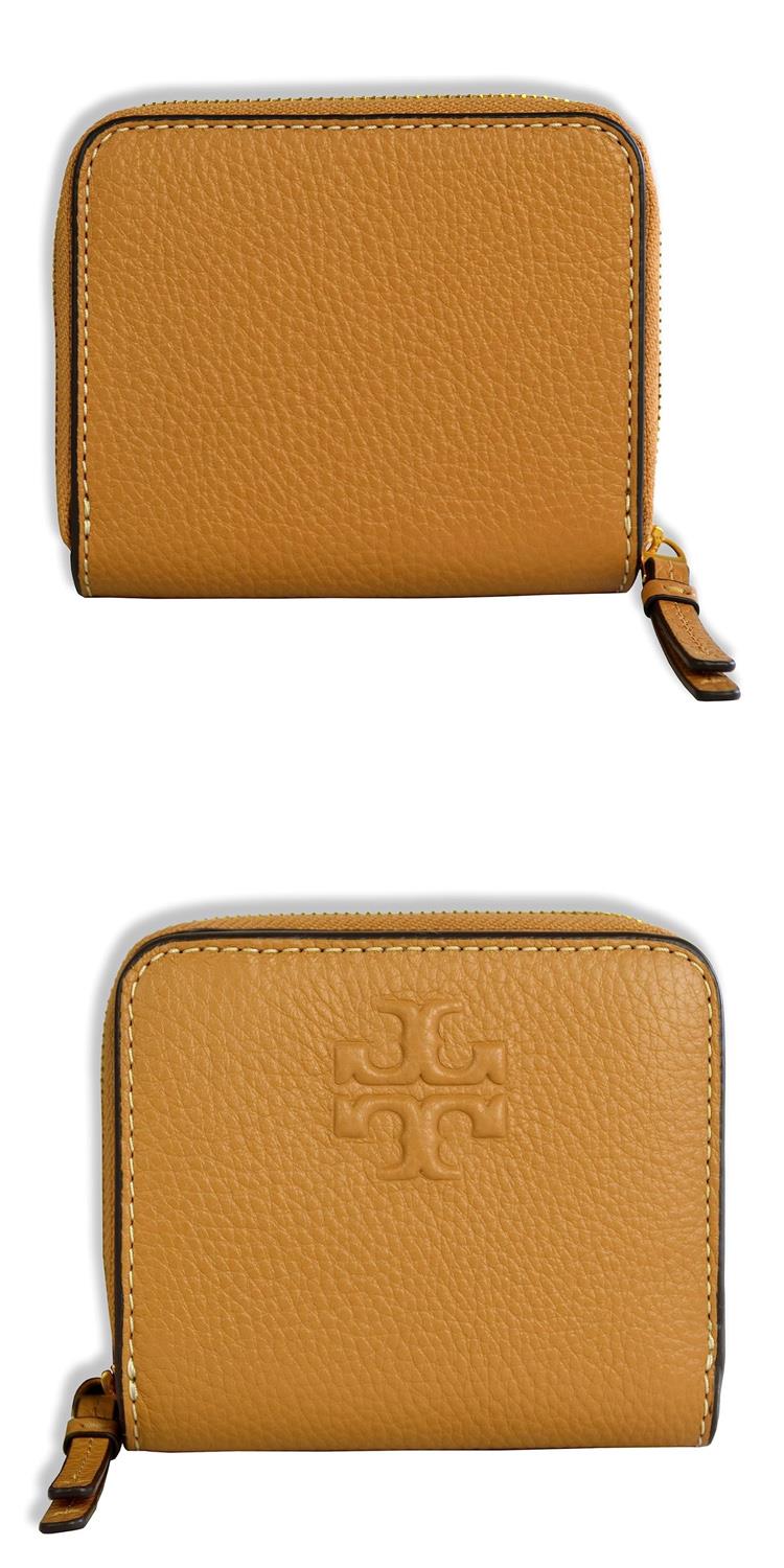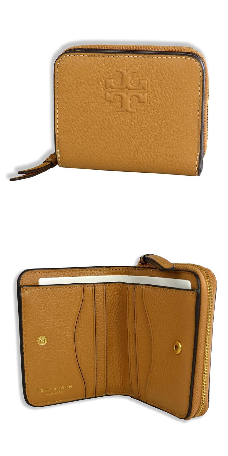 TORY BURCH 牛皮皮革浮雕logo拉鍊短夾-駝