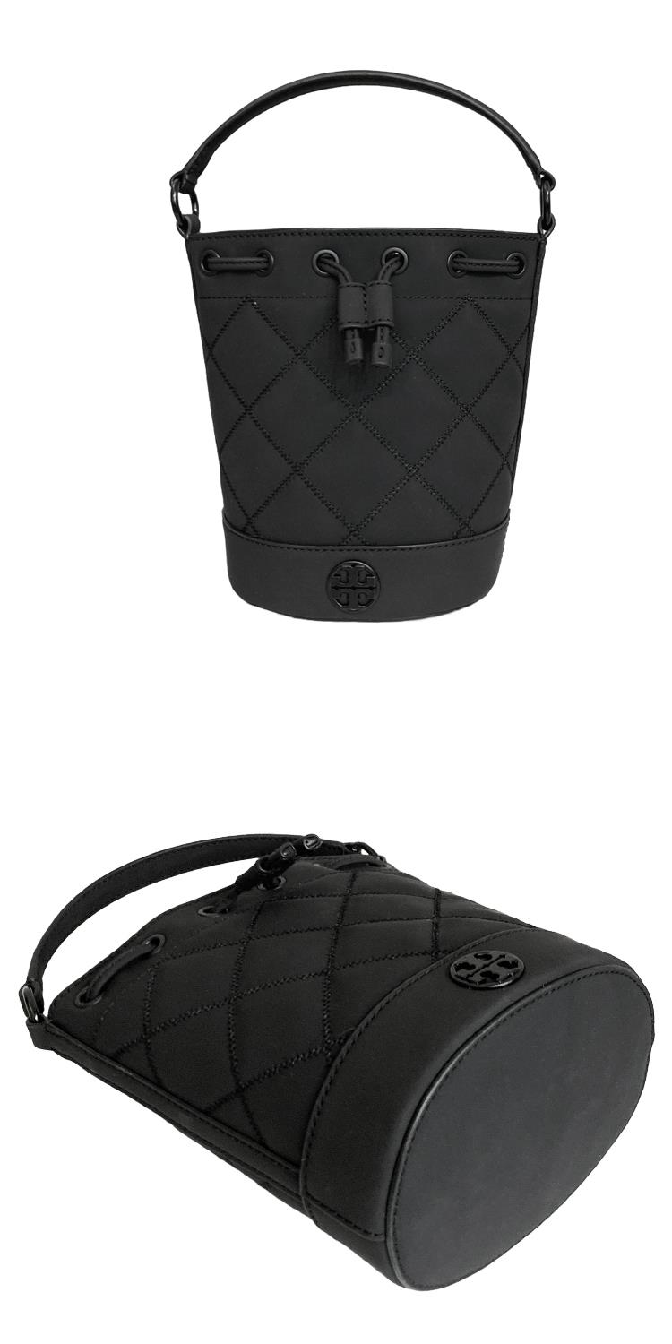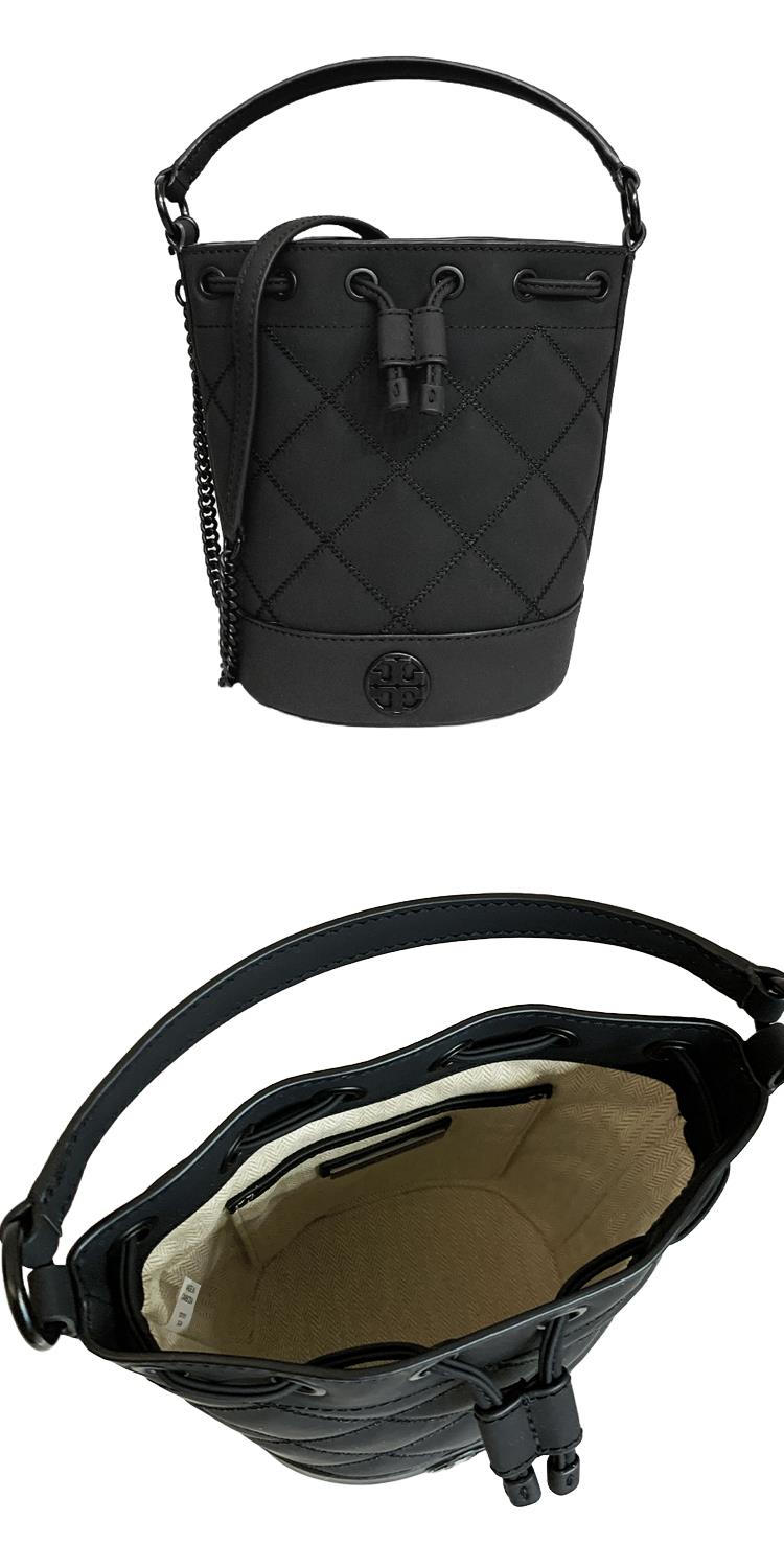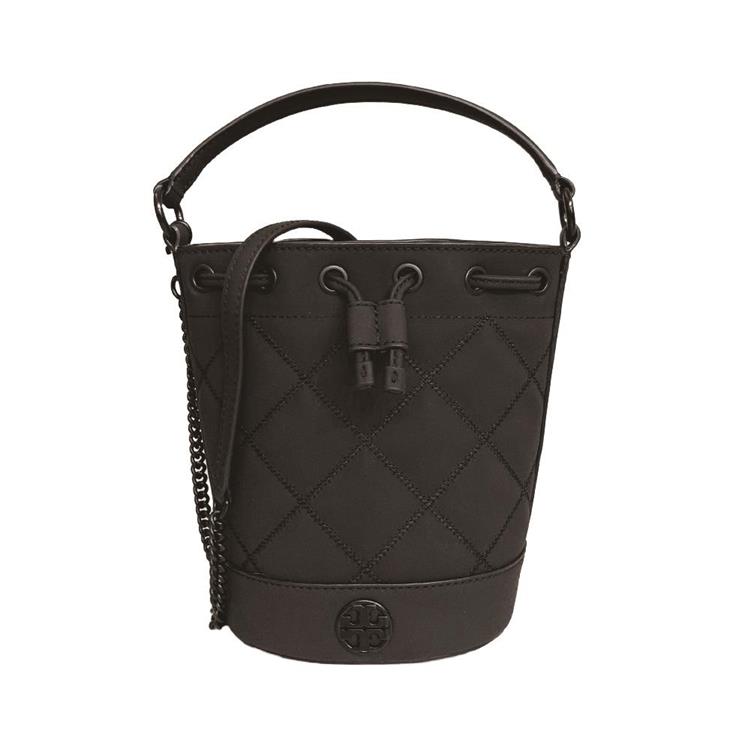 TORY BURCH 霧面菱格紋兩用水桶包-黑