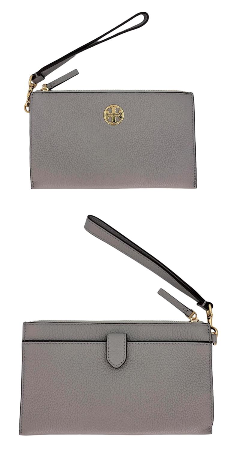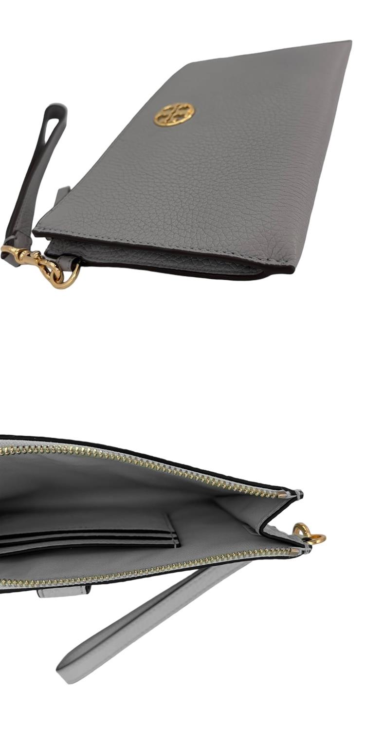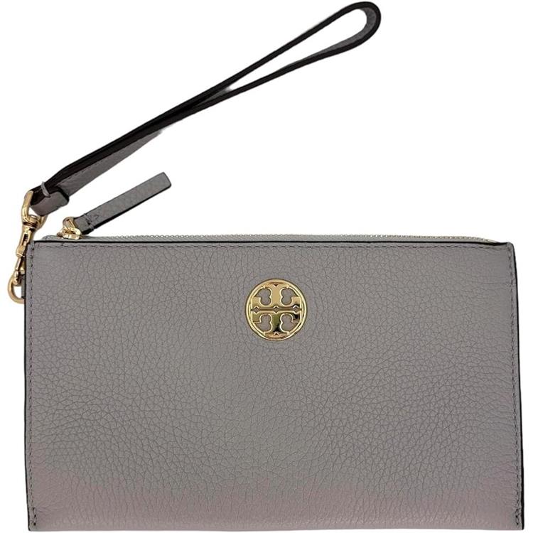 TORY BURCH 大款拉鍊皮革手拿包-灰