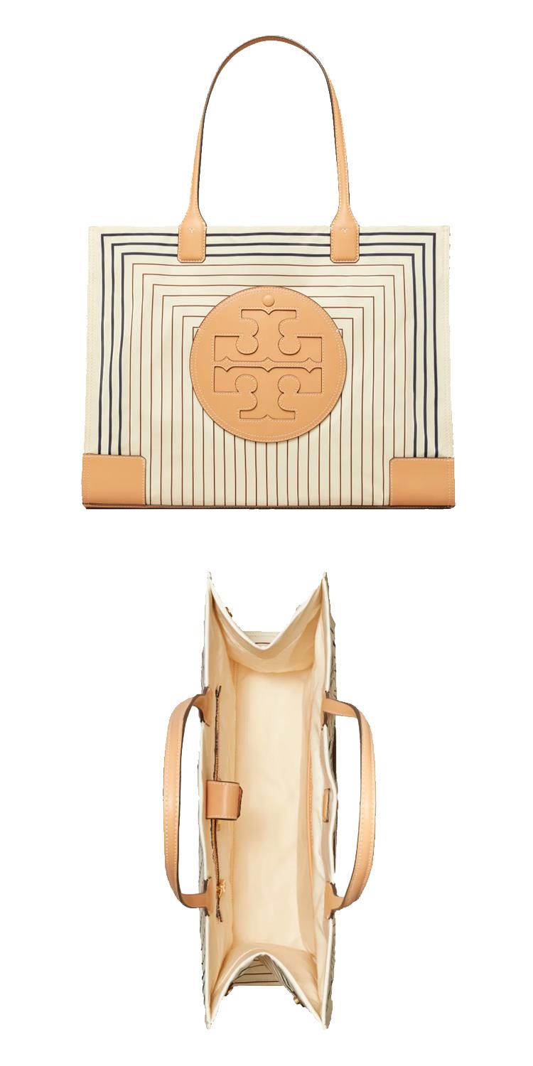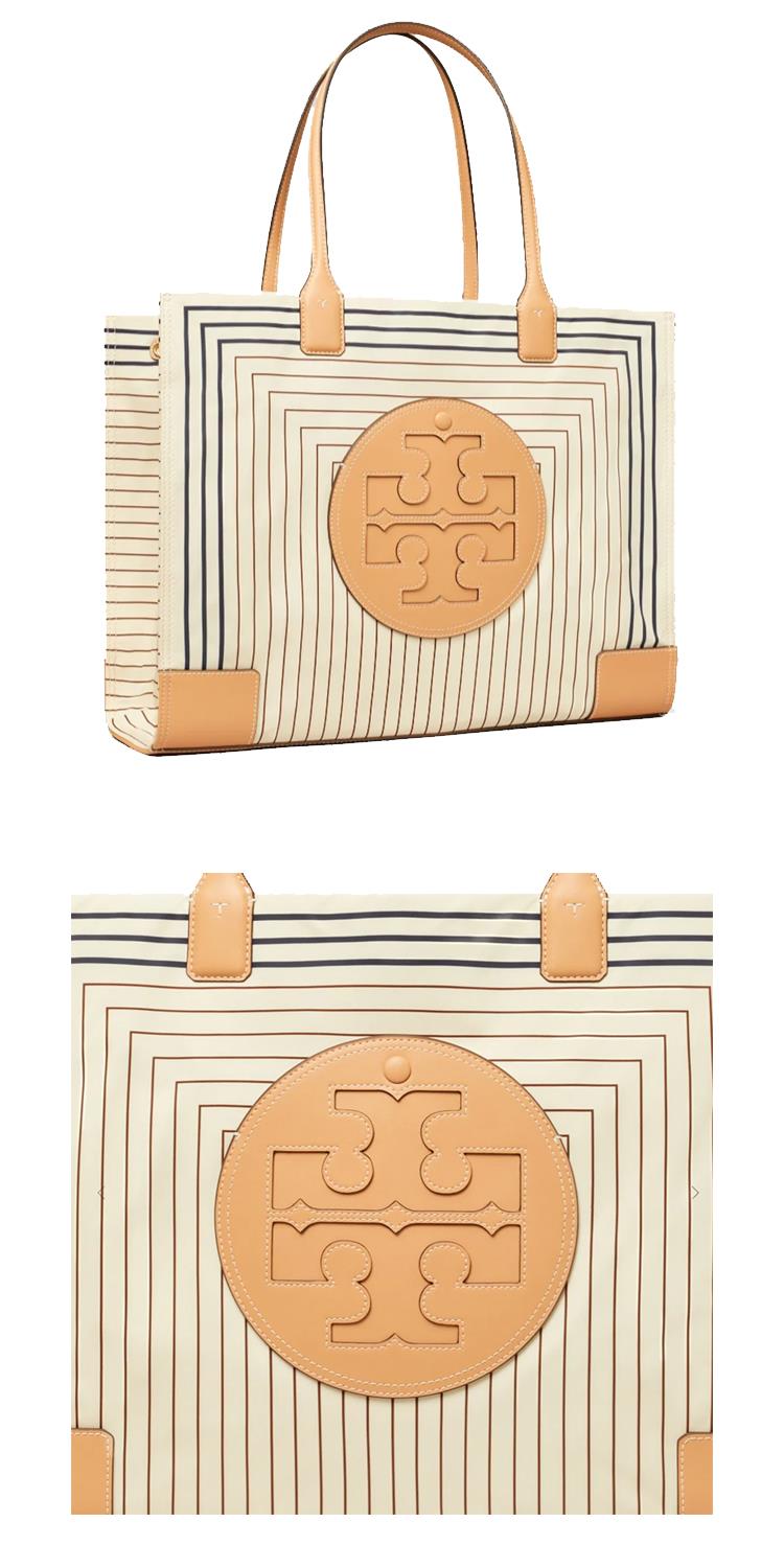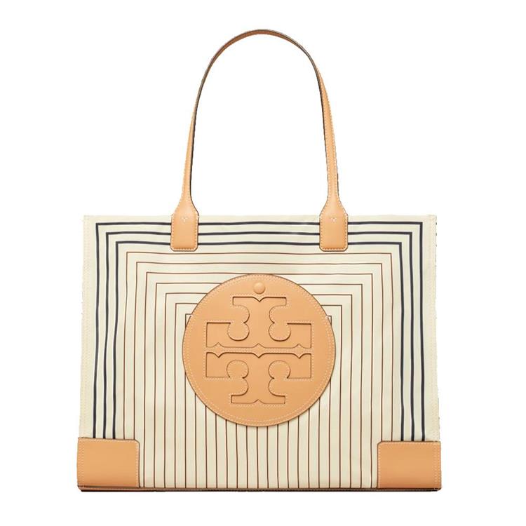 TORY BURCH 高質感尼龍幾何印花大款托特包-卡其米白