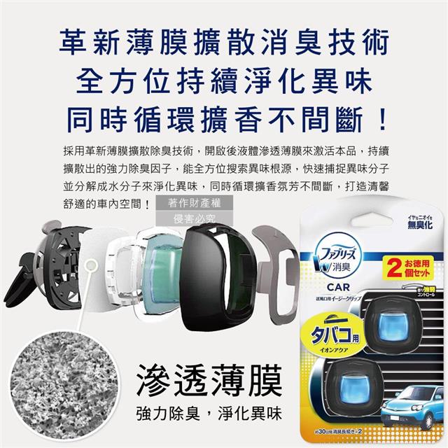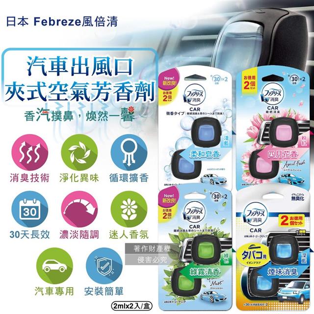 日本Febreze風倍清-汽車空調出風口專用W消臭香氛夾式空氣芳香劑2mlx2入/盒(濃淡可調30天長效)