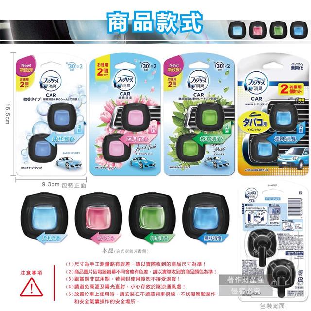 ●品名:汽車空調出風口專用W消臭香氛夾式空氣芳香劑