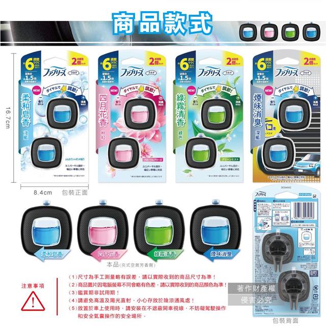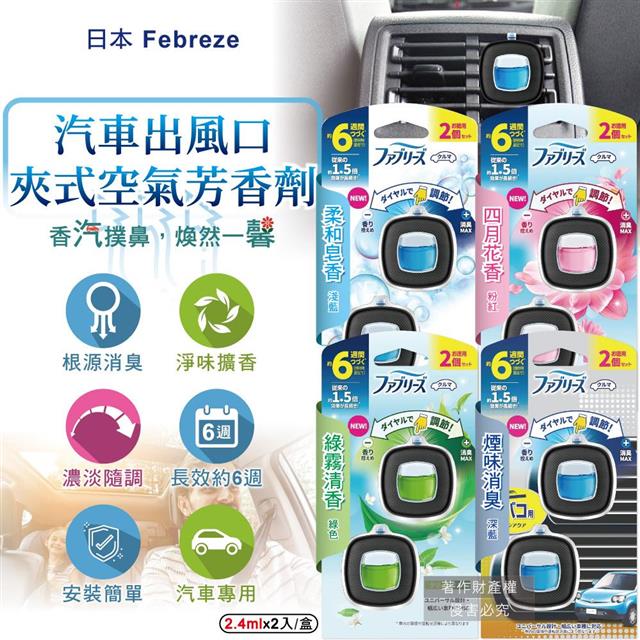 (清潔-芳香)日本Febreze風倍清-車用夾式芳香劑2.4mlx2入盒裝介紹圖