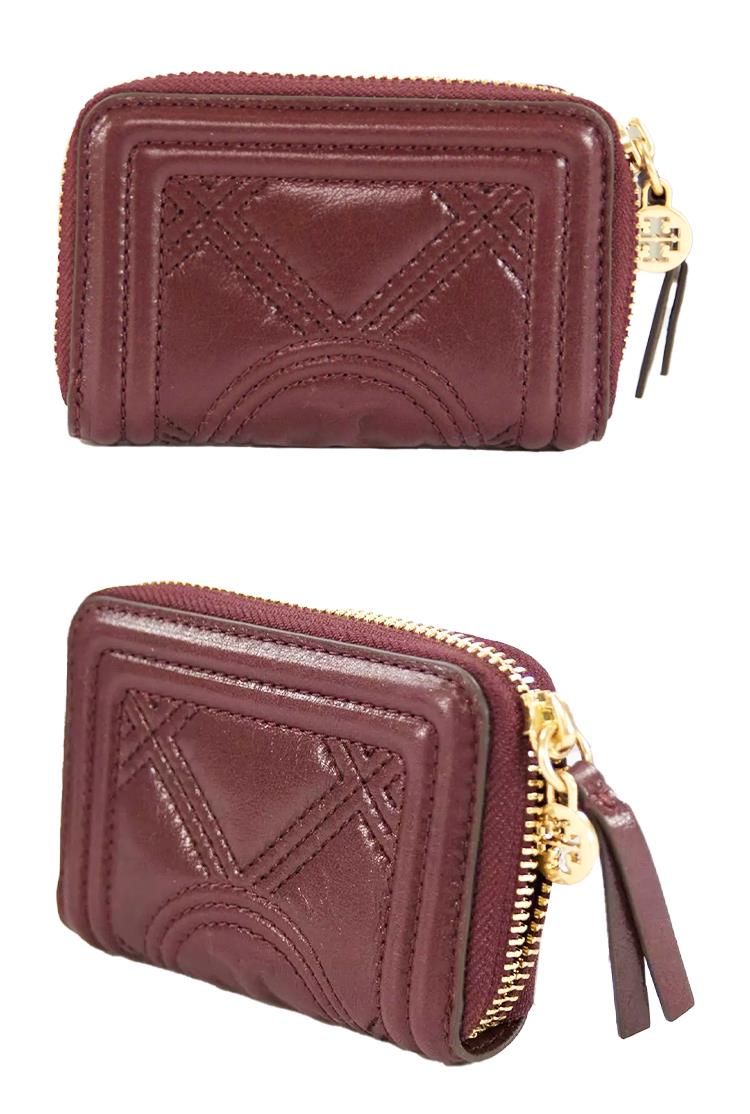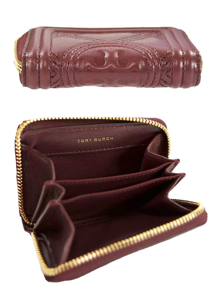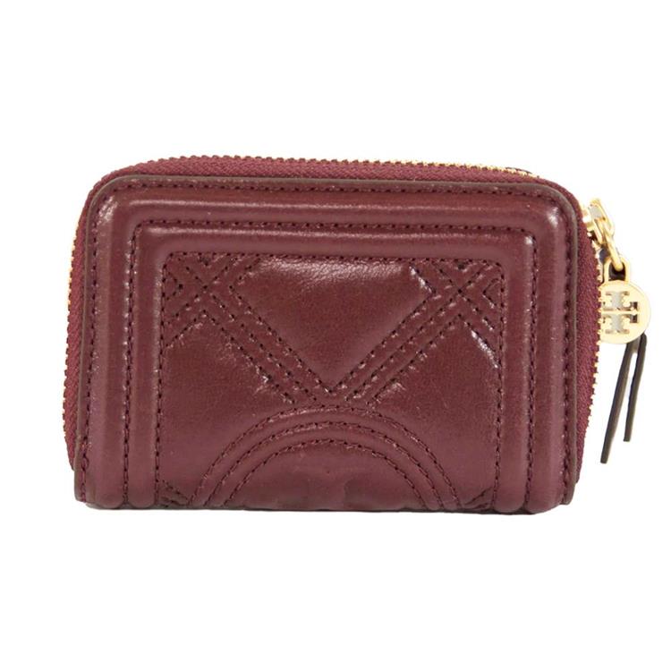 Tory burch 素面皮革拉鍊零錢包-酒紅