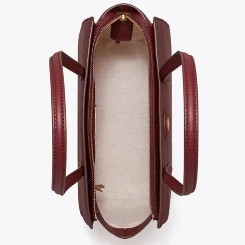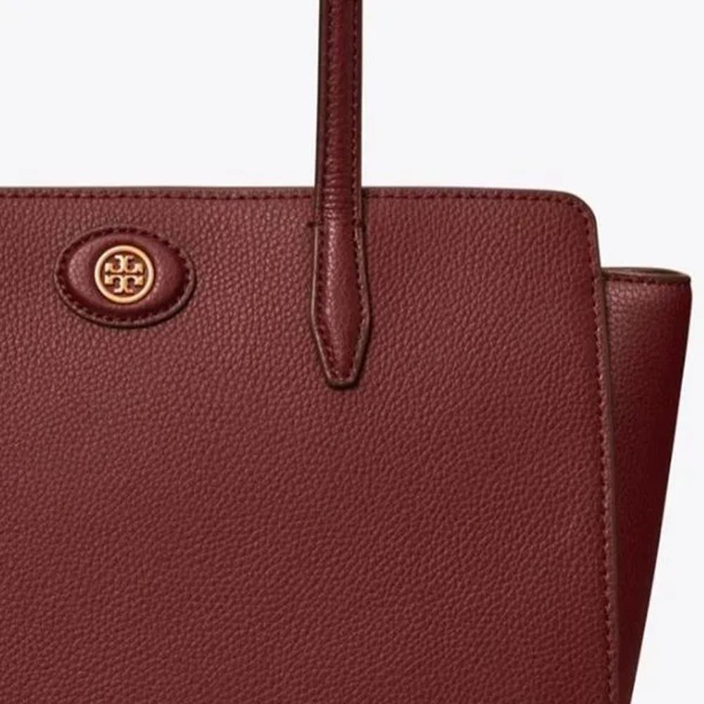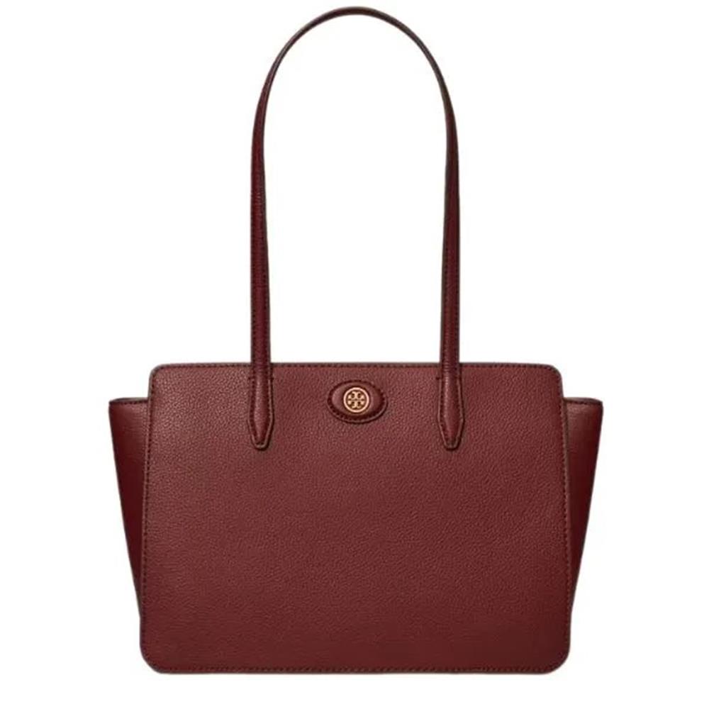 Tory burch 荔枝皮革托特包-酒紅色