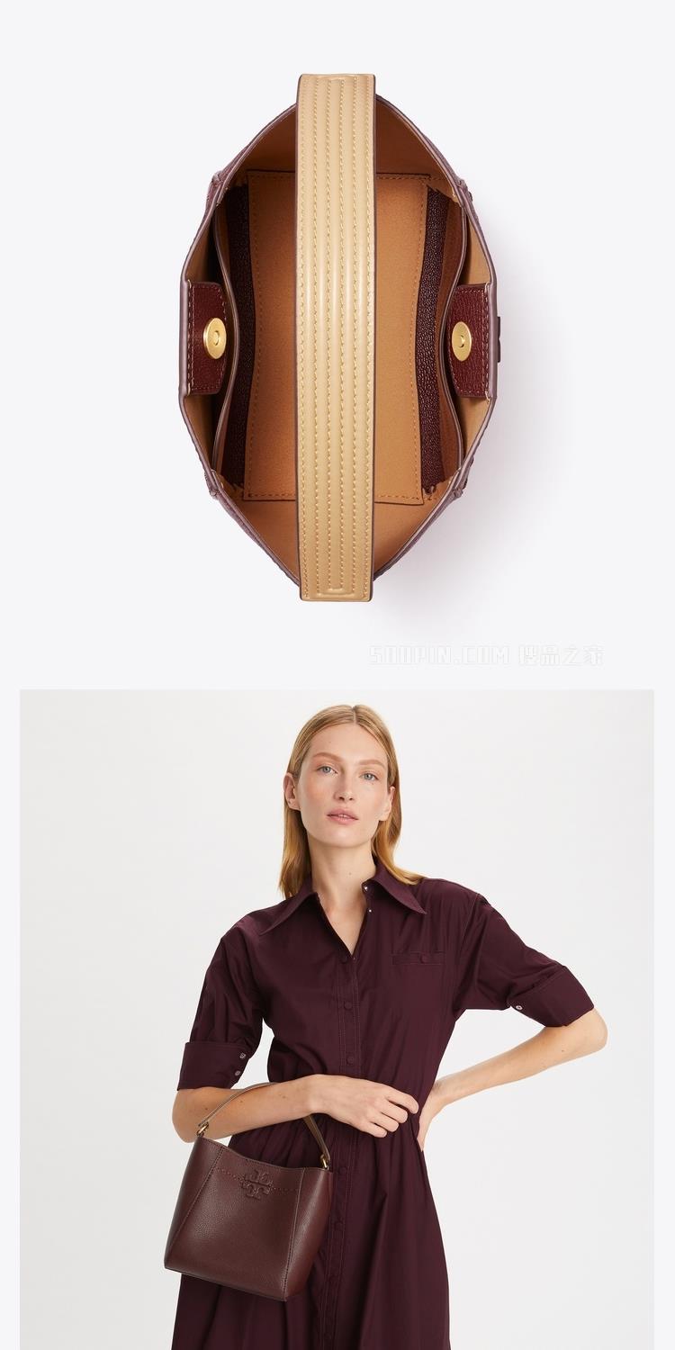 TORY BURCH 素色皮革內裏麂皮兩用包