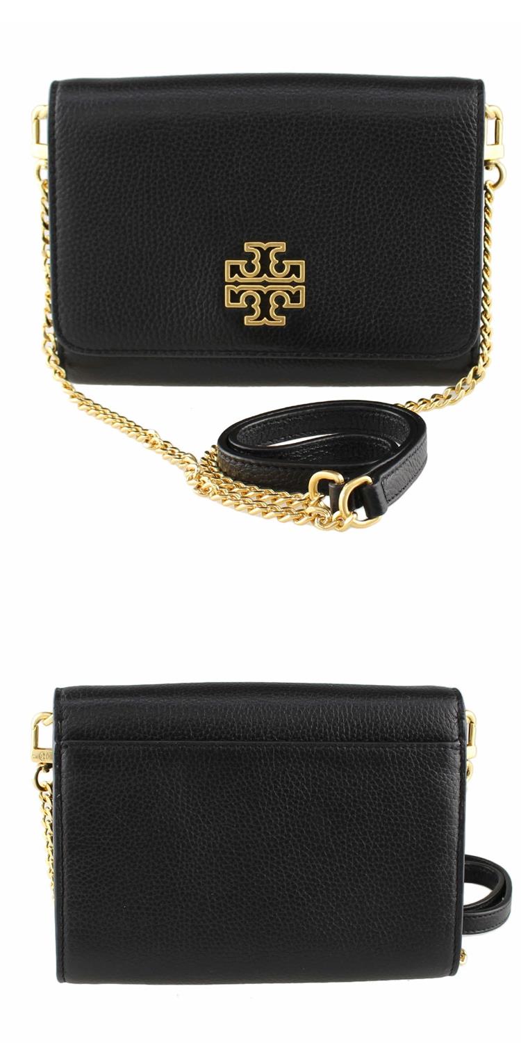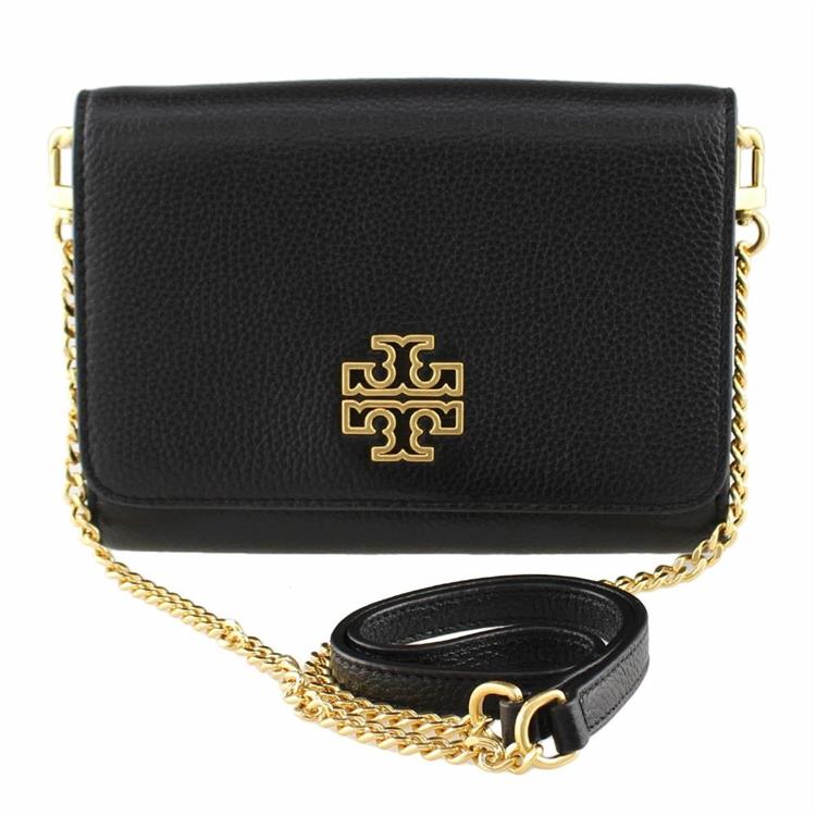 TORY BURCH 素色荔枝皮革翻蓋斜背包-黑
