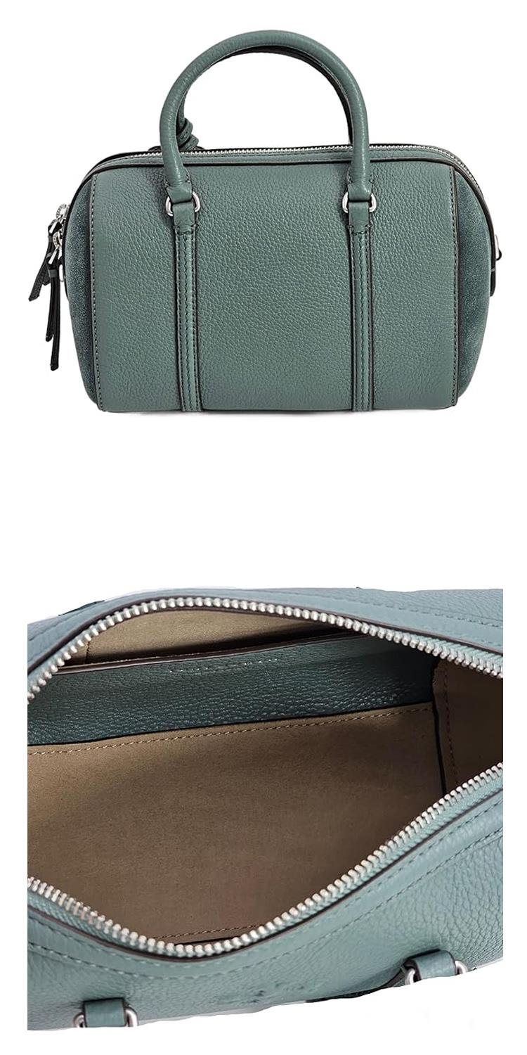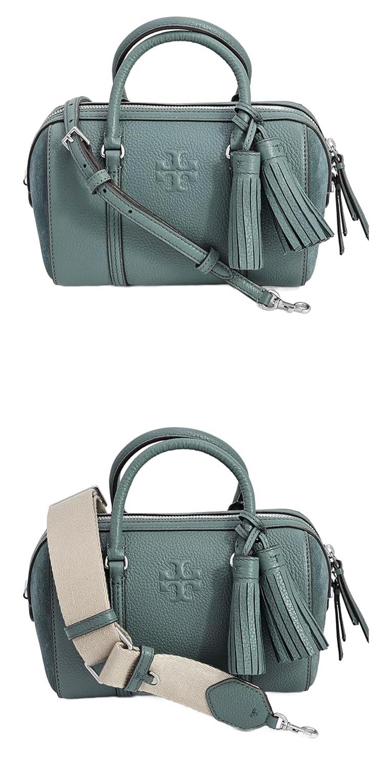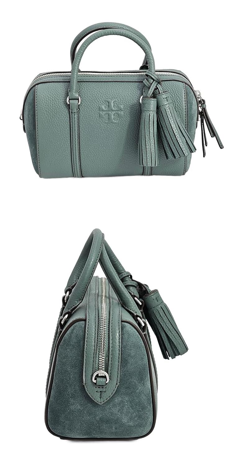 TORY BURCH 荔枝皮革拼接麂皮流蘇兩用波士頓包-莫蘭迪綠(背帶兩款可替換)