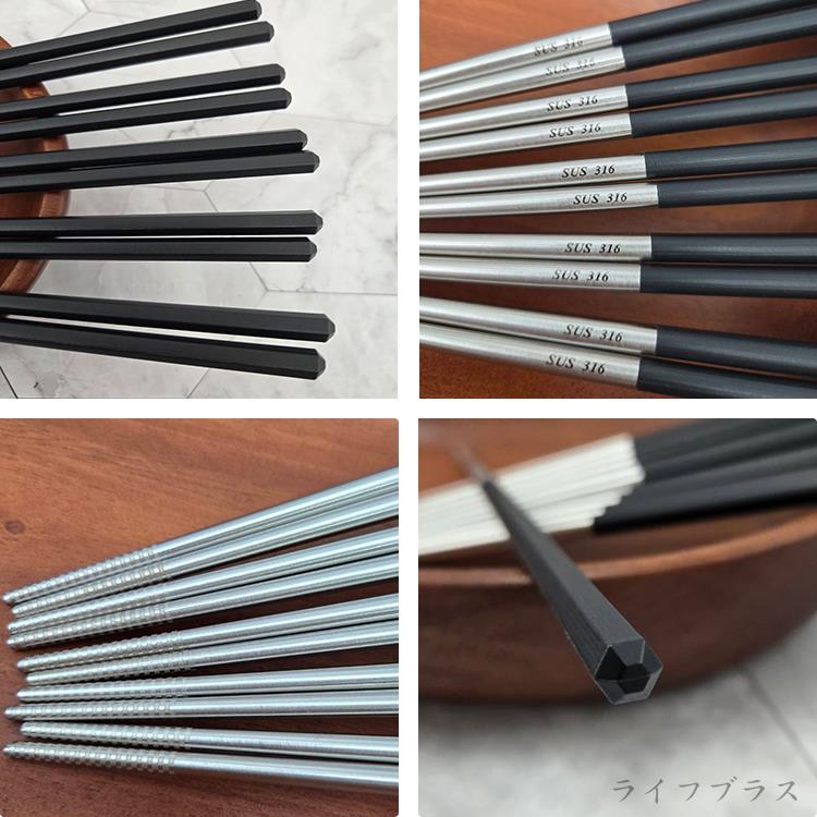 輕&漾 316不鏽鋼六角雙節筷-24cm-5雙入x2組
