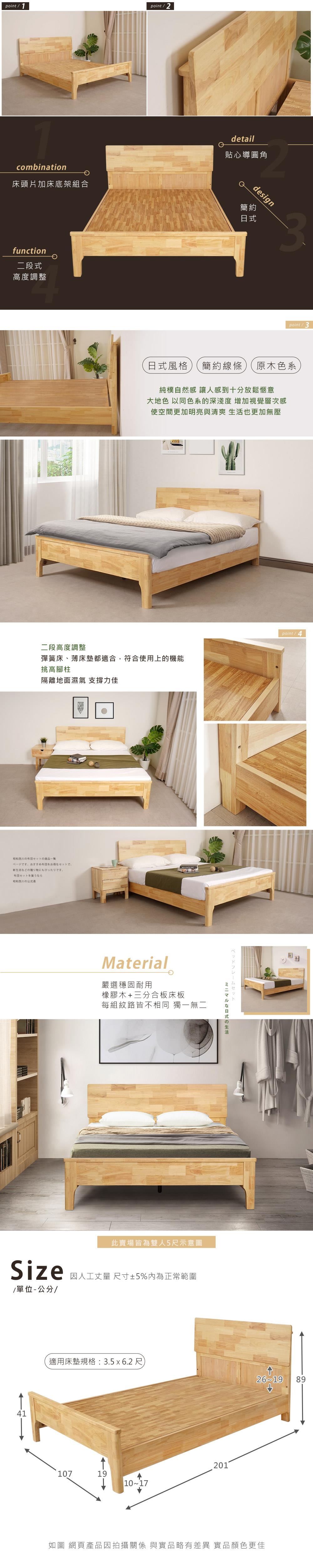 材質:橡膠木+三分合板床板