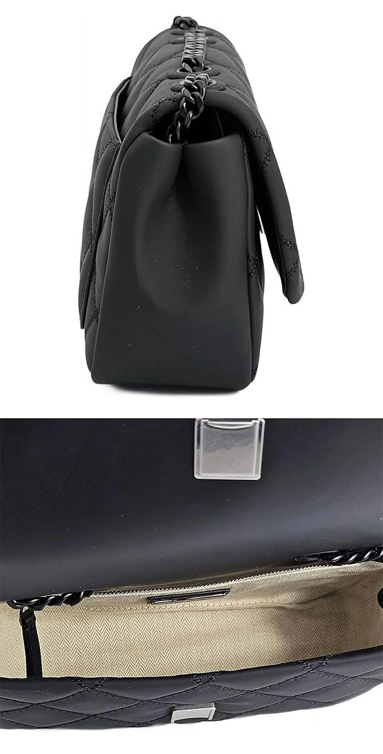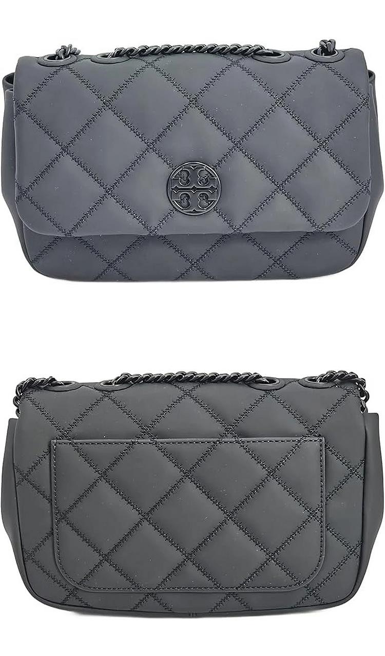 TORY BURCH 萎格紋皮革翻蓋兩用包-霧黑
