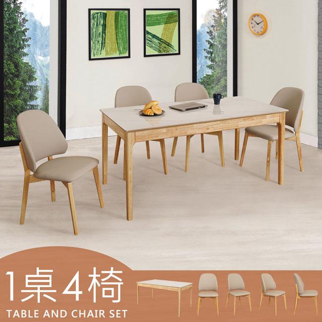 喜家居岩板餐桌椅組(一桌四椅)-原木色(2420-32)