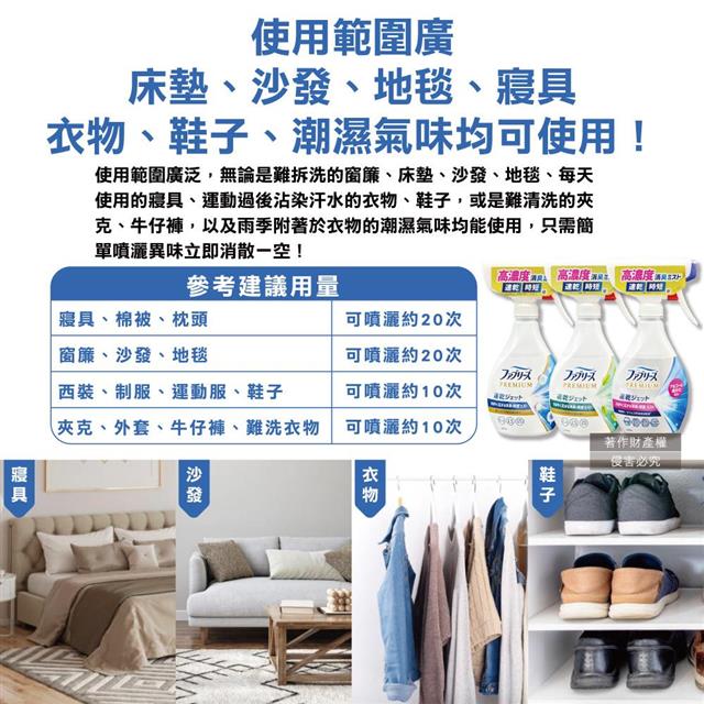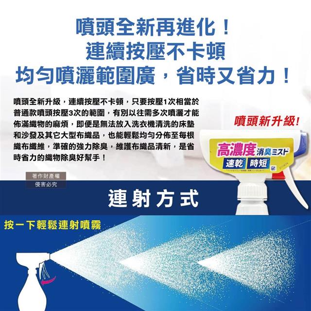 ●品名:布織品專用速乾時短高濃度超細密消臭噴霧