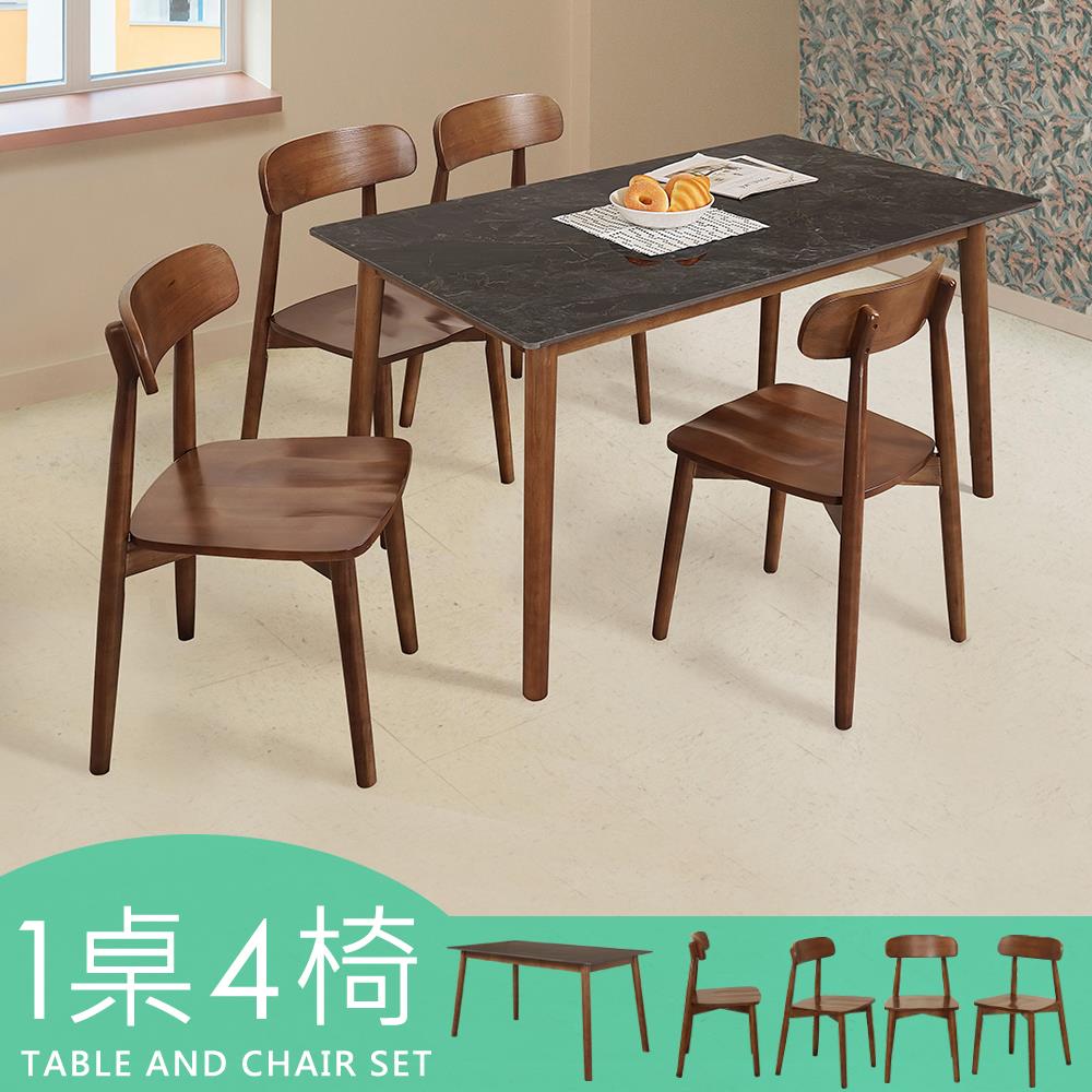 喜家居140cm黑岩板胡桃餐桌椅組(一桌四椅)(2517-19)