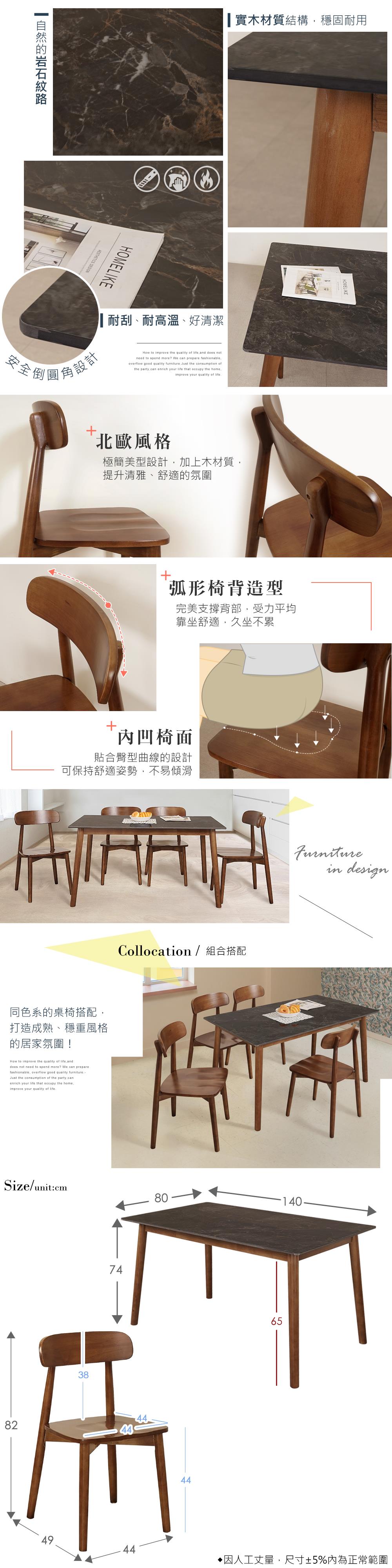 桌子材質:橡膠木、岩板