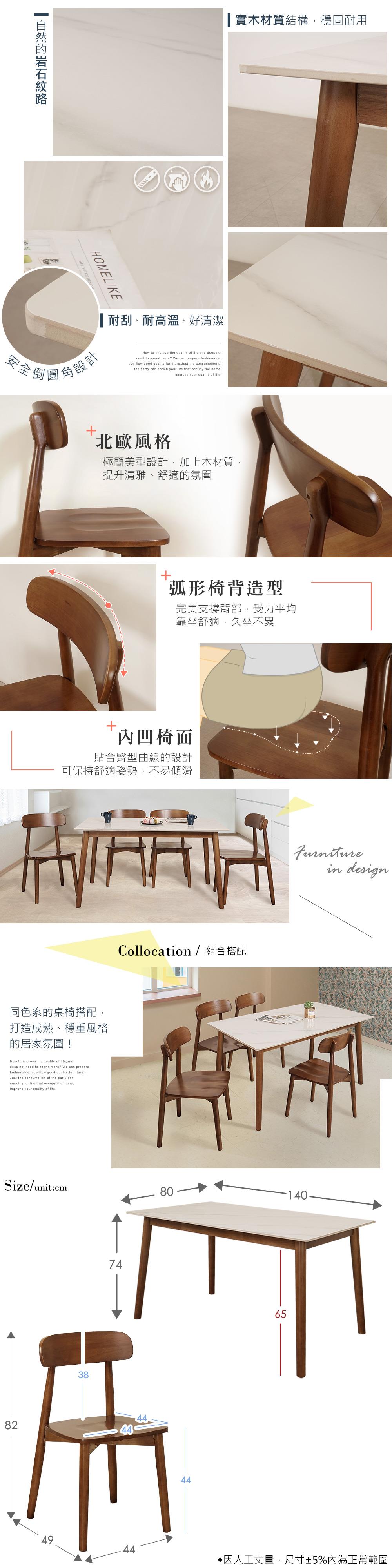 喜家居140cm白岩板胡桃餐桌椅組(一桌四椅)(2517-19)