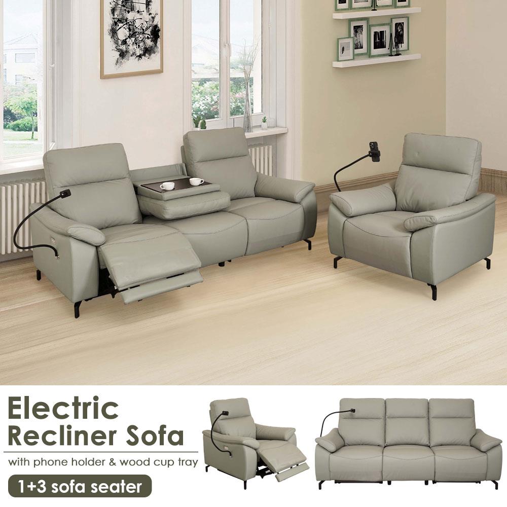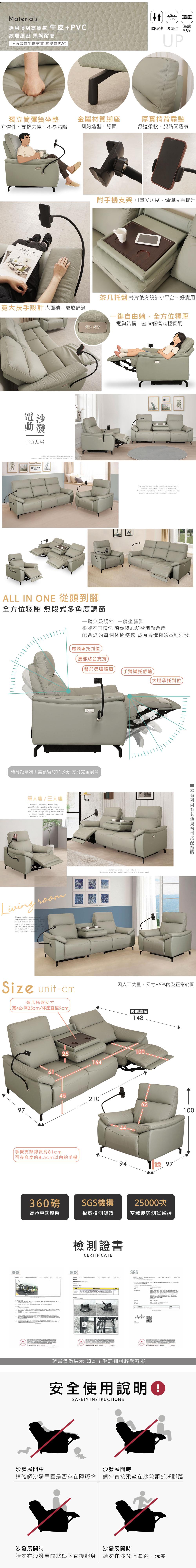 喜家居1+3人座翻背茶几雙電動沙發組(附手機支架)