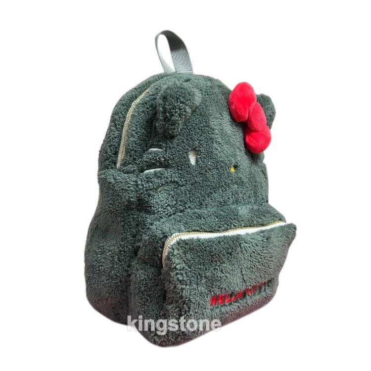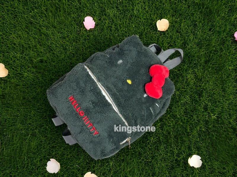 ★後背包絨毛材質設計,觸感柔軟舒服 ★正面以紅色刺繡呈現「HELLO KITTY」字樣,細膩的線條與毛絨背景形成鮮明對比