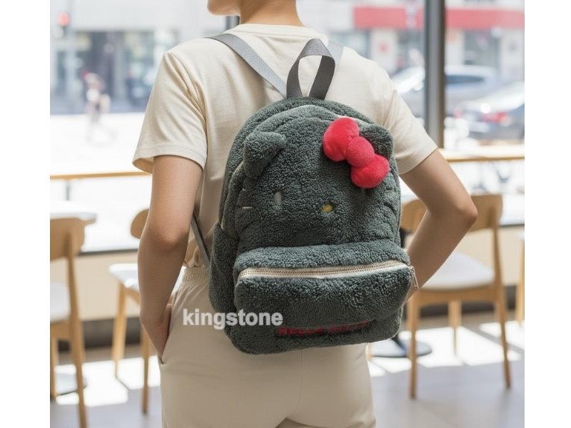 後背包以Hello Kitty為主題設計,背包絨毛材質設計觸感滑順,外部有夾層袋方便裝隨身小物品。